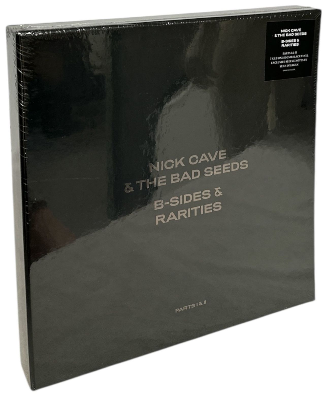 NICK CAVE B-Sides & Rarities [Parts I & II] (2021 UK 83-track 7-LP compilation, featuring B-sides, concert only singles, compilation tracks, radio session & previously unreleased songs, pressed on Audiophile quality 180 Gram Heavyweight Vinyl. Each record is issued in a matte card picture sleeve. Also comes with a 16-page booklet, all housed in a black & silver foil stamped card slipcase. The slipcase and its contents remains in Sealed within the hype-stickered shrink. Recommended)