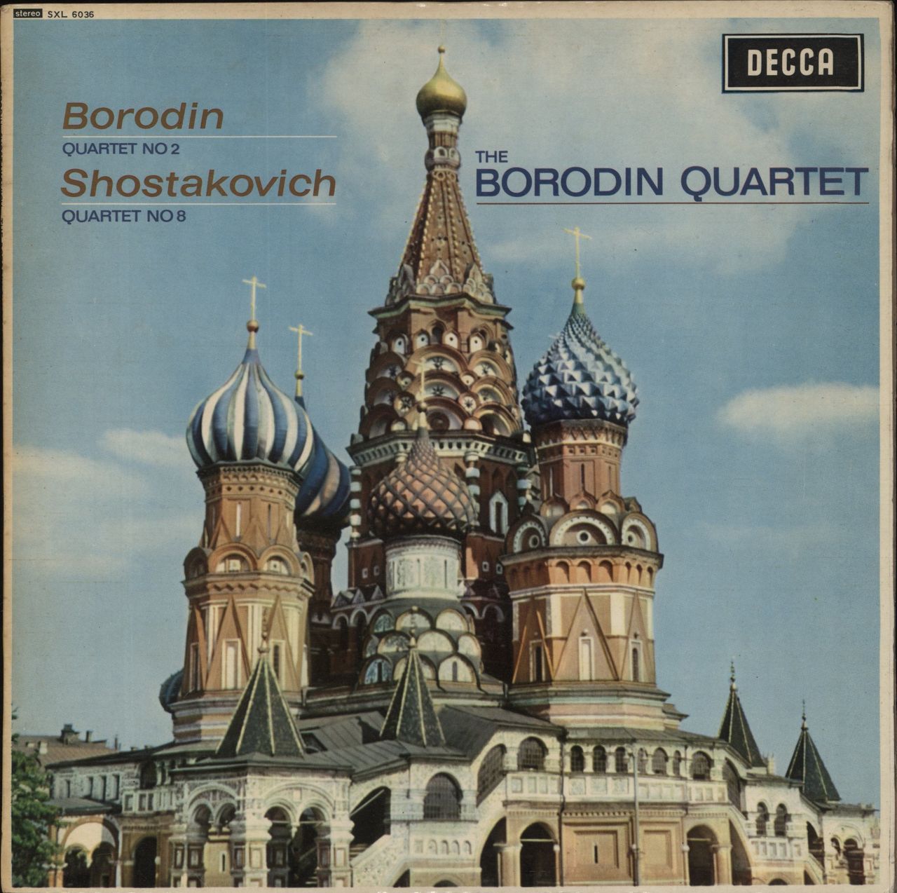BORODIN/SHOSTAKOVICH String Quartet No. 2 / String Quartet No. 8 (Scarce 1962 UK 9-track Stereo LP, with the Borodin Quartet, front laminated non-flipback picture sleeve with extensive sleeve notes. The sleeve shows medium shelf/ringwear and some moderate discolouration the the reverse, whilst the vinyl remains in Excellent condition with few signs of play SXL6036)