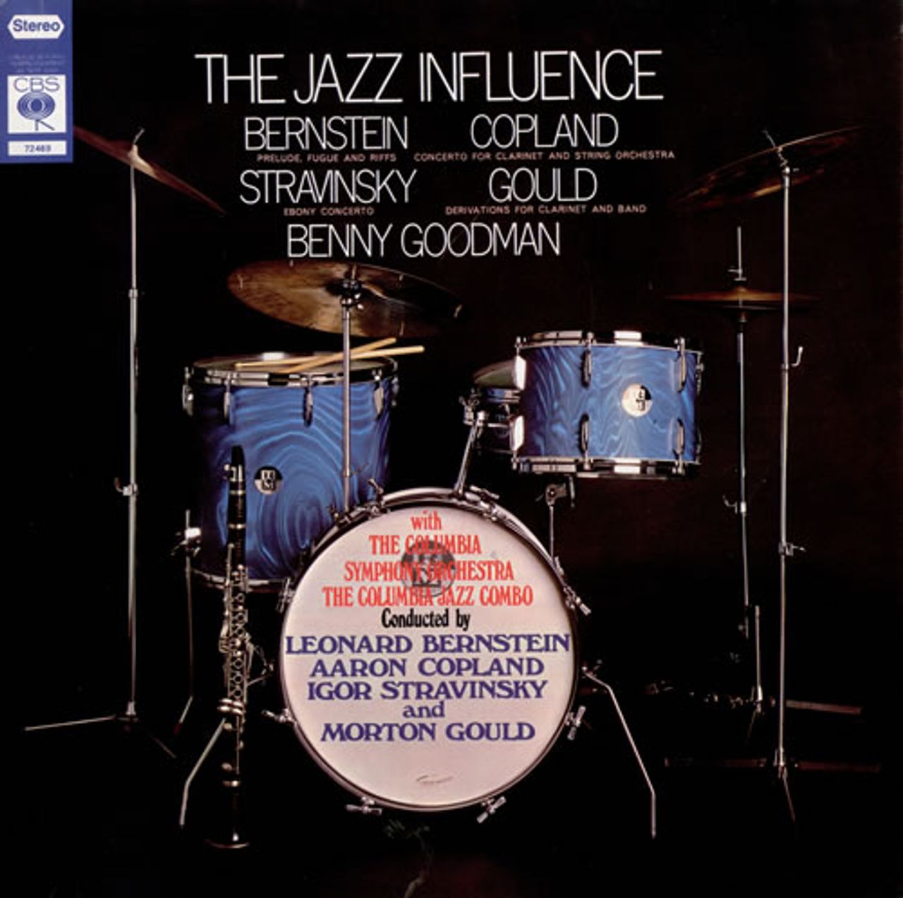 BENNY GOODMAN The Jazz Influence (1965 UK smooth blue label stereo LP, featuring the Columbia Symphony Orchestra & Jazz Combo conducted by Bernstein, Copland, Mould and Stravinsky, picture sleeve. The sleeve shows minimal wear and the vinyl appears barely played)