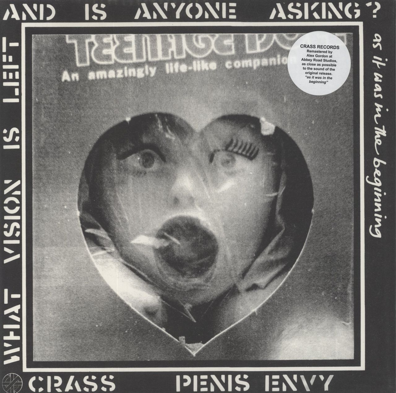 CRASS Penis Envy (2019 UK reissue of the 10-track vinyl LP of the 1981 punk album, with Eve Libertine on vocals. Remastered by Alex Gordon at Abbey Road Studios, released as part of the "as it was in the beginning" series. 6 panel fold out poster sleeve with hype-stickered poly outer bag. Both sleeve & vinyl display minimal signs of wear and play)
