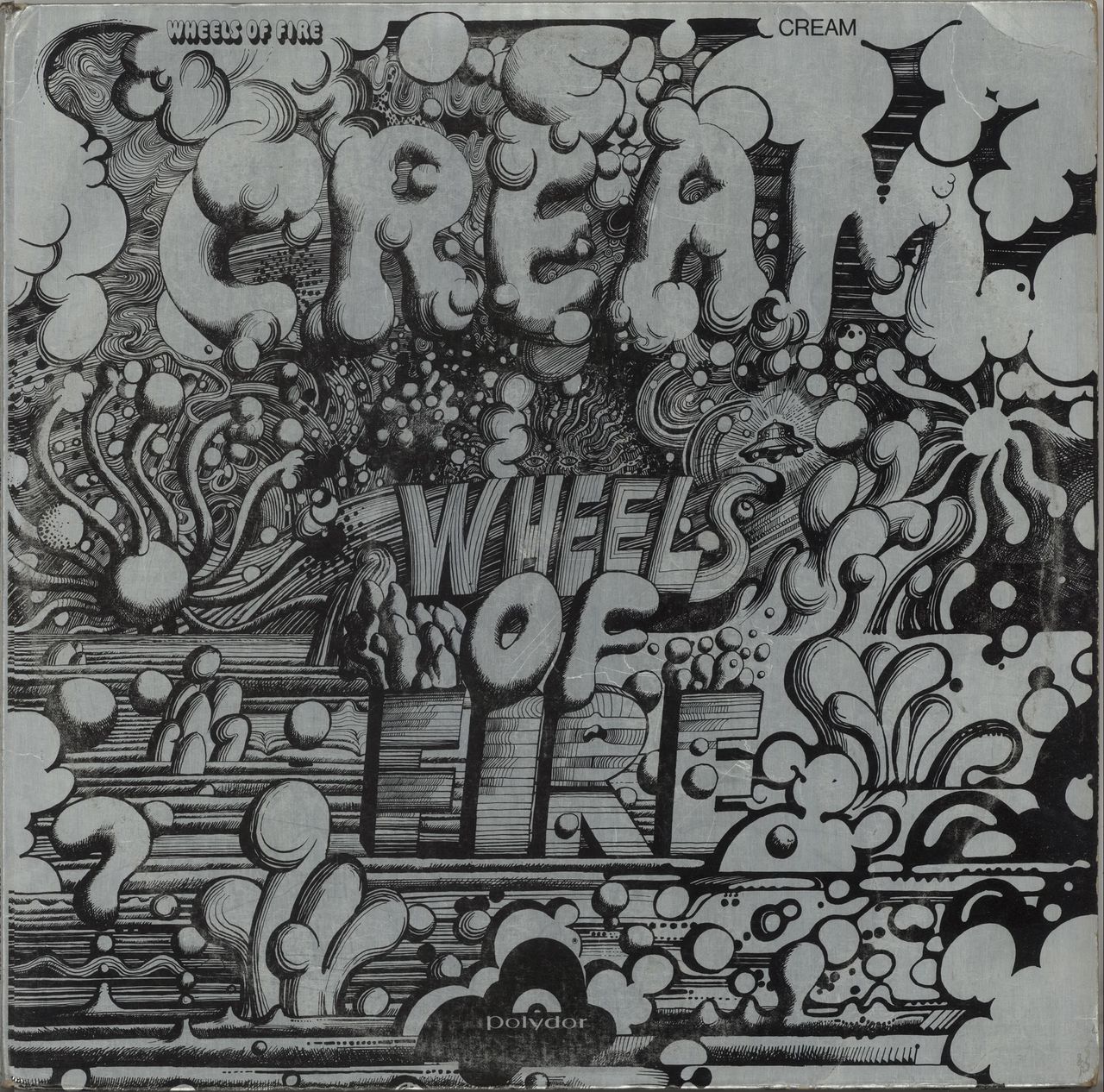 CREAM Wheels Of Fire (1968 UK 13-track MONO double vinyl LP, featuring recordings made In The Studio & Live At The Fillmore, gatefold picture sleeve. The sleeve remains VG with a few creases and a little scuffing to the foil finish, as all copies appear to have half a century on, with all text legible including along the spine & no writing. The vinyl carries a few light cosmetic marks/hairlines, not interfering with play - A great play copy of this 60's classic)