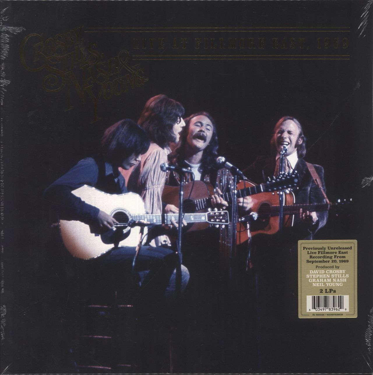 CROSBY, STILLS, NASH & YOUNG Live At Fillmore East, 1969 (2024 Dutch pressed 17-track double LP, the newly discovered multi-track recording of the band's September 20 1969, concert at the historic Fillmore East in New York City. Housed in a gatefold picture sleeve, factory sealed in its hype-stickered shrink in mint condition. Recommended)