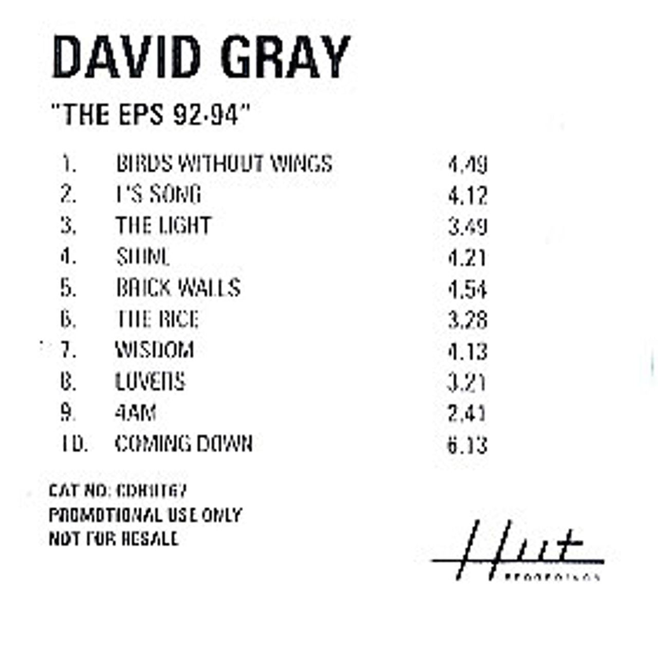 David Gray The EPs 92-94 UK Promo CD-R acetate