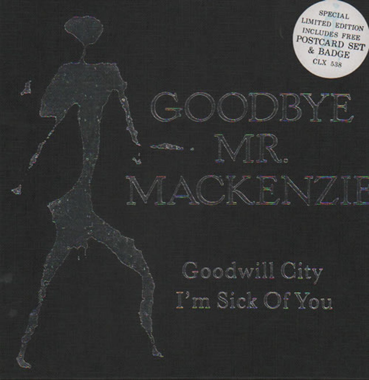 GOODBYE MR MACKENZIE Goodwill City (1989 UK Limited Edition 7" vinyl box set, also including I'm Sick Of You, housed in a picture sleeve with two postcards & a badge, all housed in a custom stickered, textured & silver embossed 7" box CLX538)
