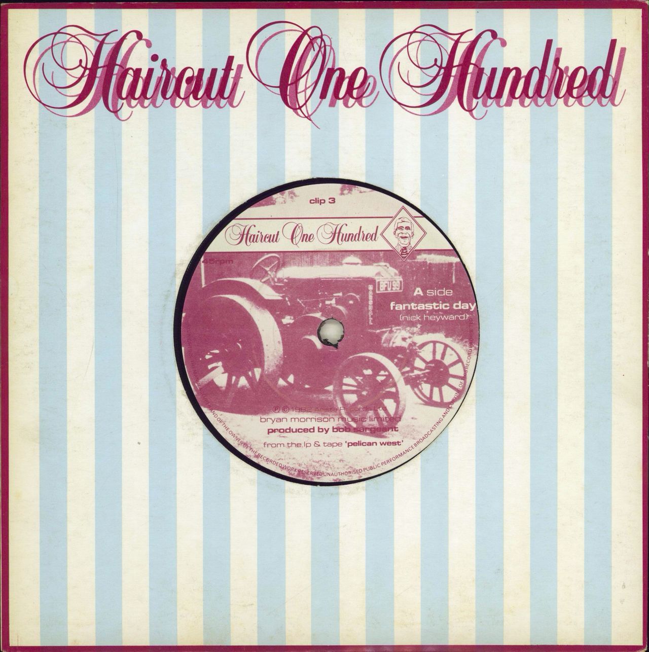 HAIRCUT 100 Fantastic Day (1982 UK solid centre 7" vinyl single with picture labels, also including Ski Club, housed in a custom die cut sleeve CLIP3)