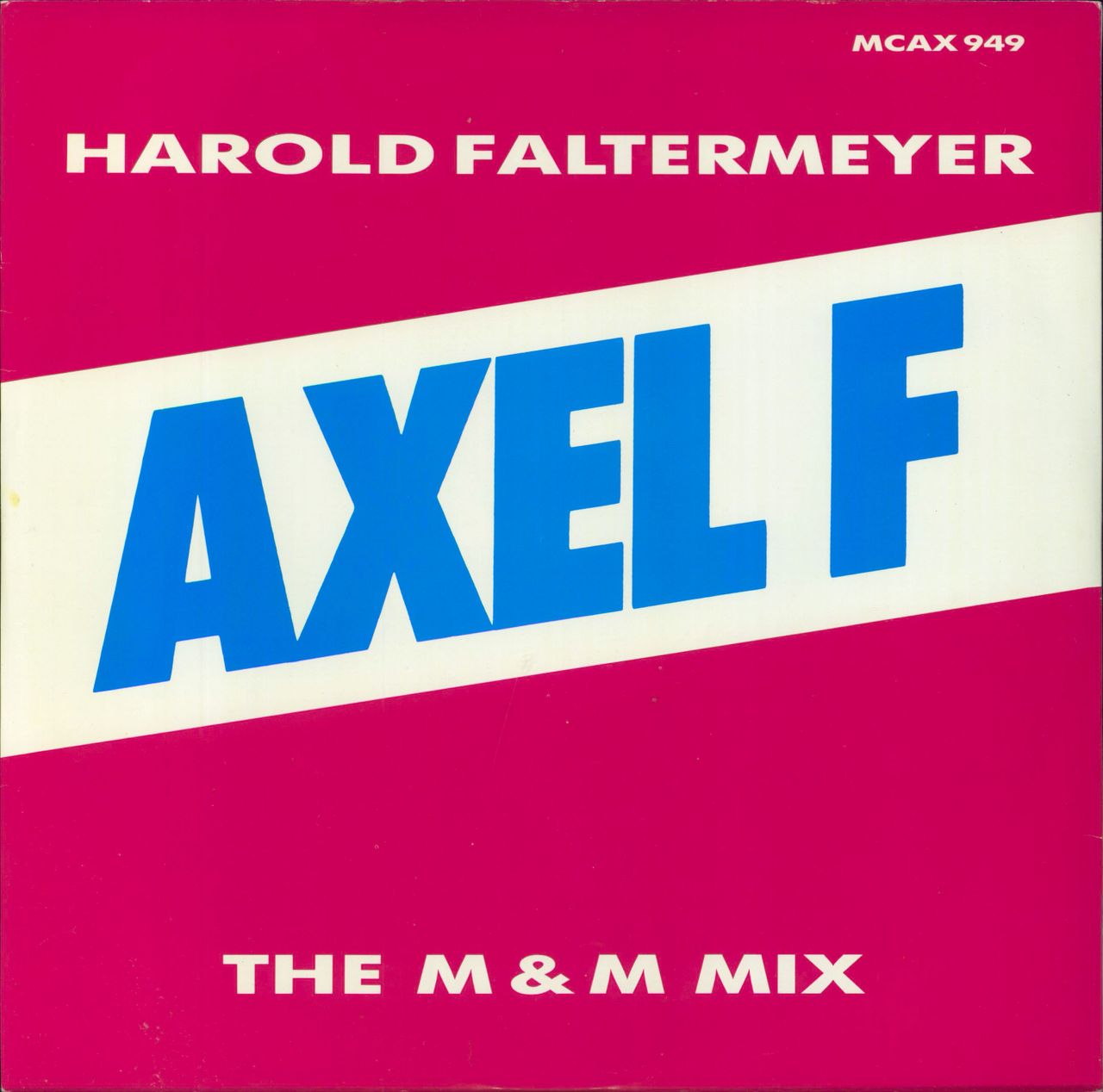 HAROLD FALTERMEYER Axel F (1984 UK 3-track 12" vinyl single including the M & M Mix [7:00] and Extended Version [7:09] plus 'Shoot Out'. The glossy titled sleeve shows only light shelfwear and the vinyl remains in Excellent condition MCAX949)