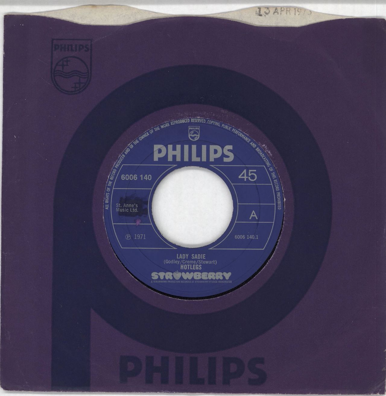 HOTLEGS Lady Sadie (1971 UK wide centred 7" vinyl single,
