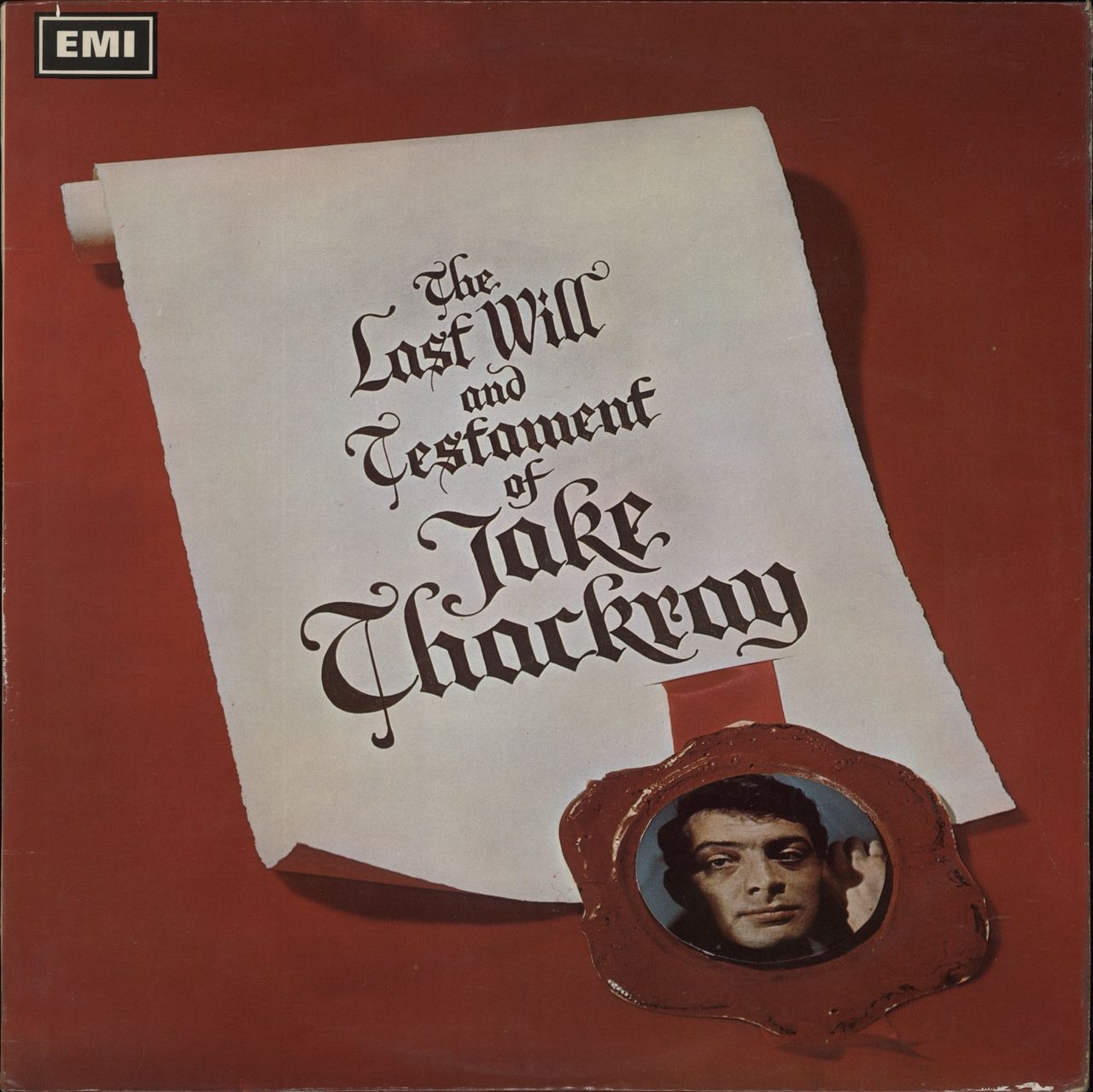 JAKE THACKRAY The Last Will And Testament Of Jake Thackray (1967 UK 11-track stereo vinyl LP on the blue & black Columbia label, front laminated flipback picture sleeve with company catalogue inner. The sleeve shows a little scuffing and the vinyl is Excellent & appears barely played SCX6178)