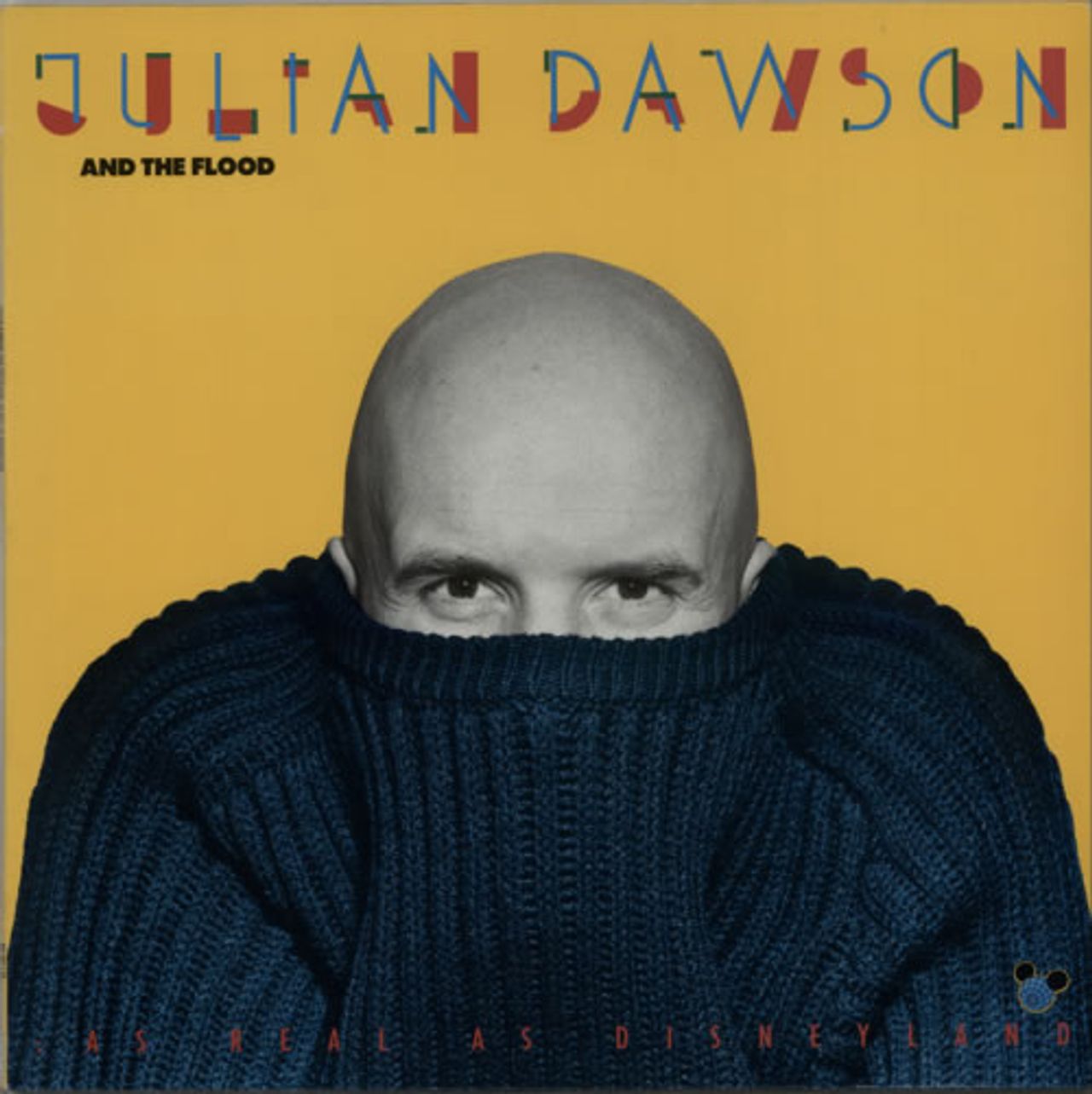 JULIAN DAWSON AND THE FLOOD As Real As Disneyland (1987 German 11-track LP that sees the British singer songwriter team up with Can founder Jaki Liebezeit on an album recorded at Can's Studio in Germany, with special guests including Richard Thompson, complete with illustrated lyric inner, picture sleeve. The sleeve shows minimal shelfwear & the vinyl remains near 'as new' with little sign of play)