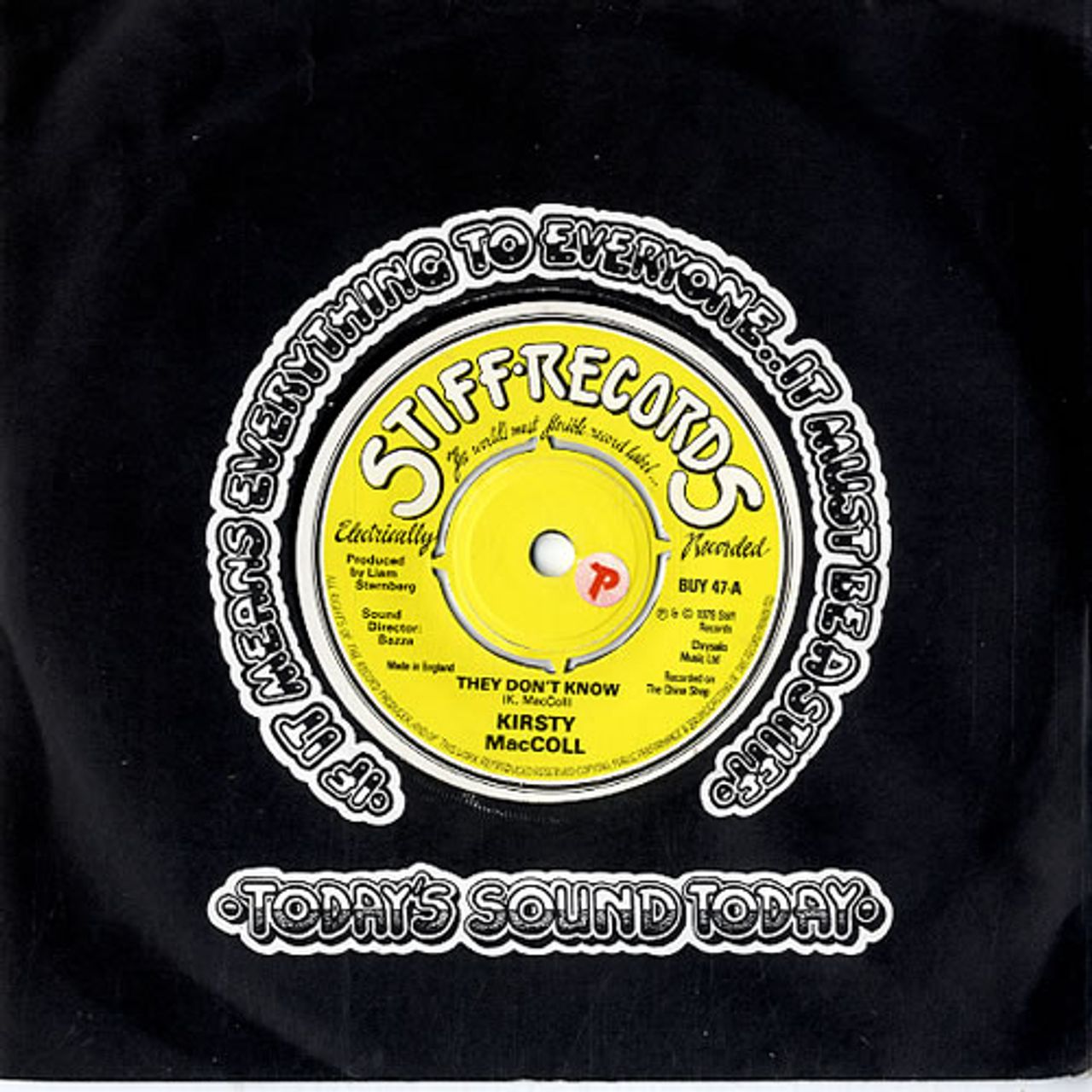 KIRSTY MACCOLL They Don't Know (1979 UK Stiff 7" vinyl single with intact four prong centre, also includes Motor On, Stiff company die-cut paper sleeve BUY47)