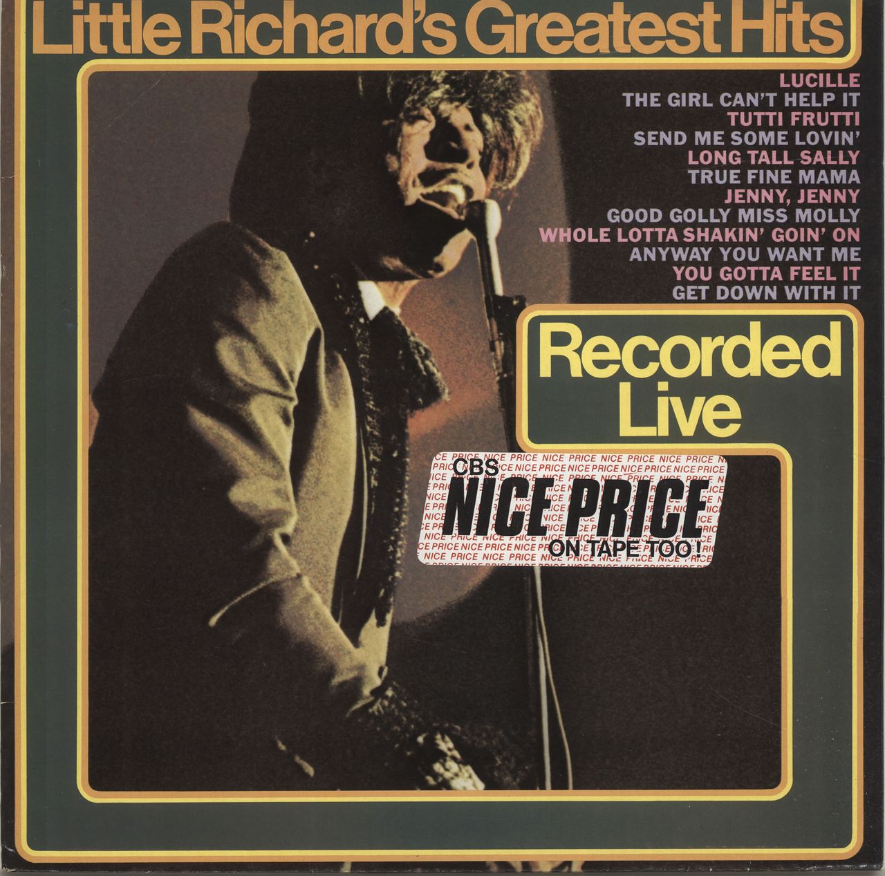 LITTLE RICHARD Little Richard's Greatest Hits Recorded Live (1980s UK issue of the 1967 12-track vinyl LP, CBS 'Nice Price' stickered picture sleeve with company catalogue inner)