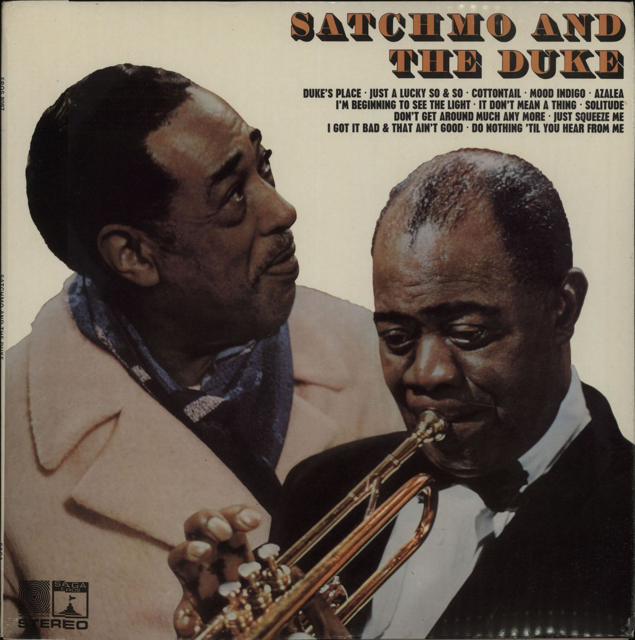 LOUIS ARMSTRONG & DUKE ELLINGTON Satchmo & The Duke (1969 UK 12-track stereo LP, first recorded in New York City on 3rd April, 1961, front laminated picture sleeve. The cover shows merely the lightest spot of ageing & the vinyl is Excellent witha few faint paper hairlines not affecting play EROS8097)