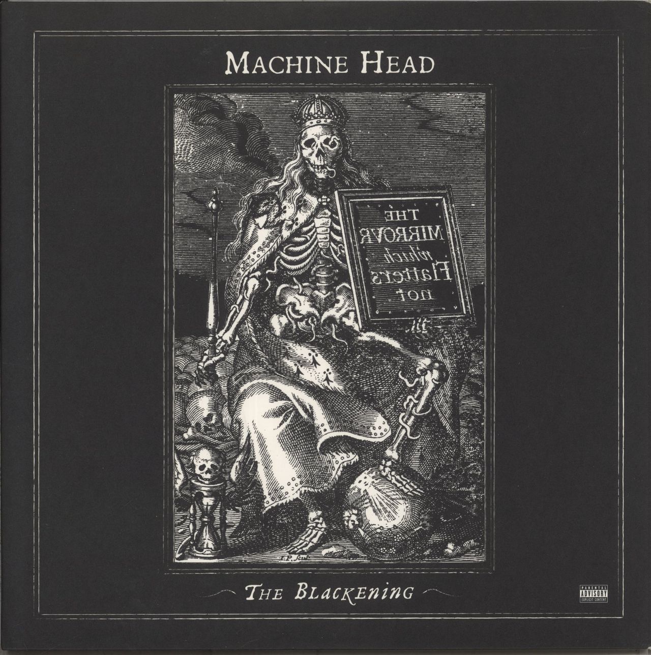 MACHINE HEAD The Blackening (2008 release of the 2007 US 8-track 2-LP vinyl set, the sixth album from the band which sees their groundbreaking sound pushed further than it's ever gone before, as they challenged themselves and each other to write a record that would demolish all of their boundaries, resulting in 60 minutes of the most structurally complex and technical material that Machine Head have ever recorded. Housed in a lightly textured matte gatefold picture sleeve with picture lyric inners. The sleeve shows minimal wear, the inners show a small seam split and the vinyl remains in a very strong Excellent condition )