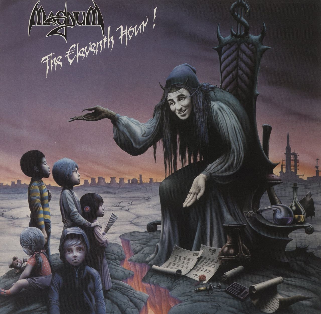 MAGNUM The Eleventh Hour! (1988 UK/German Direct Metal Mastered issue of the 1983 10-track LP, housed in a glossy picture sleeve with Rodney Matthews artwork complete with the lyric insert. The sleeve is Excellent with light shelf wear with some ring wear present to the reverse - the vinyl is clean & in Excellent condition with a few faint cosmetic signs of play WKFMlP111)