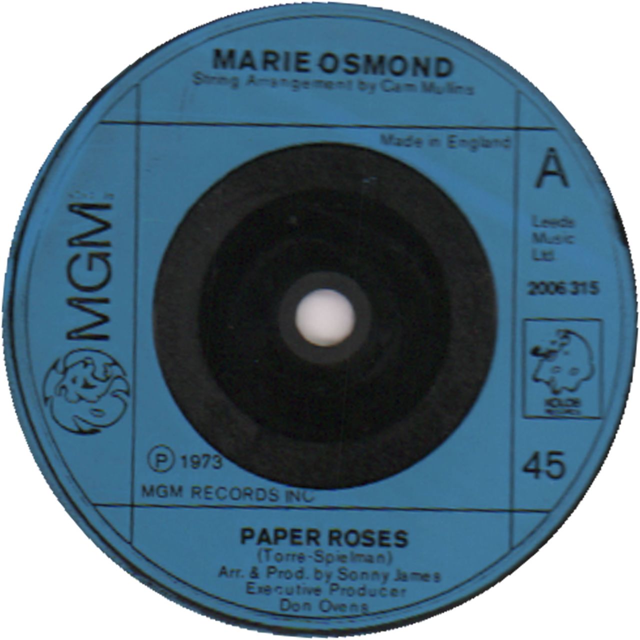 MARIE OSMOND Paper Roses (1973 UK injection moulded 7" vinyl single of the breezy radio hit, also including Least Of All You, plain die-cut paper sleeve)