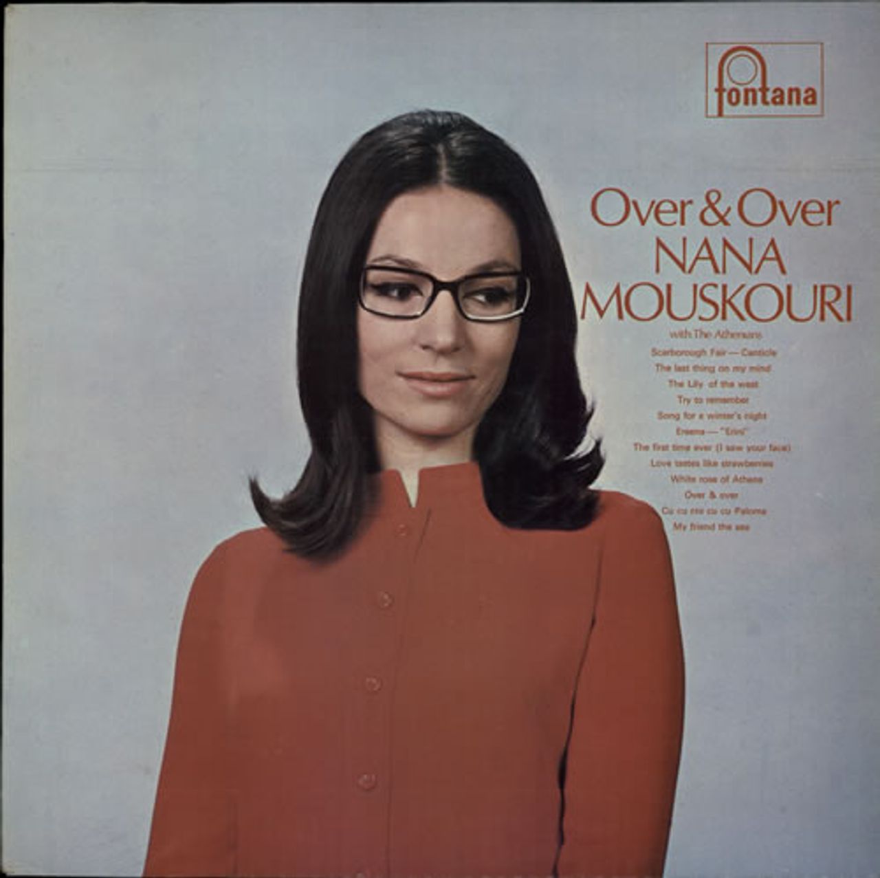 NANA MOUSKOURI Over & Over (1969 UK 10-track stereo vinyl LP, also starring The Athenians & Christian Chevallier with Orchestra, includes beautiful renditions of Gordon Lightfoot's Song For a Winters Night, Simon & Garfunkels Scarbrough Fair/Canticle and Tom Paxtons (That Was) The Last Thing On My Mind, fully laminated picture sleeve. The sleeve shows few signs of age and the vinyl remains in Excellent condition STL5511)