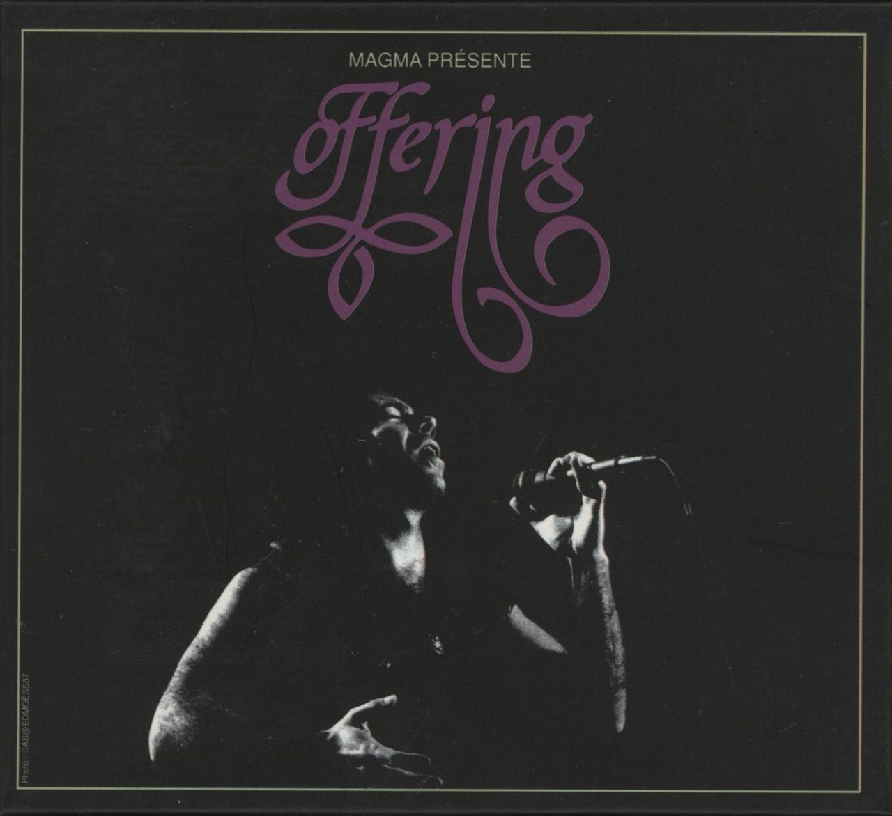 OFFERING Magma Présente Offering (2003 French 20-track four CD boxset compiling the complete studio output from Christian Vander's post-Magma project, originally recorded between 1986–1993 and reissued here in a deluxe clamshell-style picturebox. This spiritual jazz/avant-garde suite features all four albums – Offering I-II, Offering III – "Another Day", and Offering IV – Affïeh – showcasing Vander’s signature vocal-led, acoustic compositions dedicated to the legacy of John Coltrane. Includes the previously unreleased track Out Of This World plus a 16-page booklet packed with rare photos, full credits, liner notes, and reflections from Vander himself. The box shows just light shelfwear and all contents remain in near mint condition – a must-have for Zeuhl devotees and avant-jazz collectors alike!)
