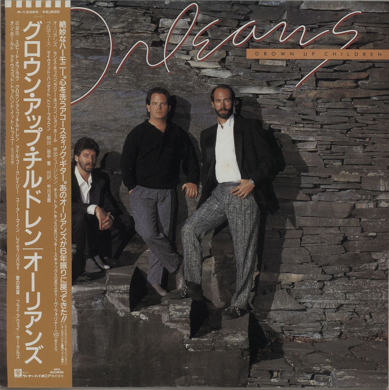 ORLEANS Grown Up Children (1986 Japanese MCA label 11-track promo sample vinyl LP issued to radio stations and reviewers ahead of the release date, including the singles You're Mine, Lady Liberty and Grown Up Children, housed in the picture sleeve with the English lyrics printed on the reverse and comes with the Japanese text / lyric insert and obi-strip. There is a little foxing to the back of the sleeve with some minor age yellowing to the insert however, the vinyl remains in 'asnew' condition P-13365)
