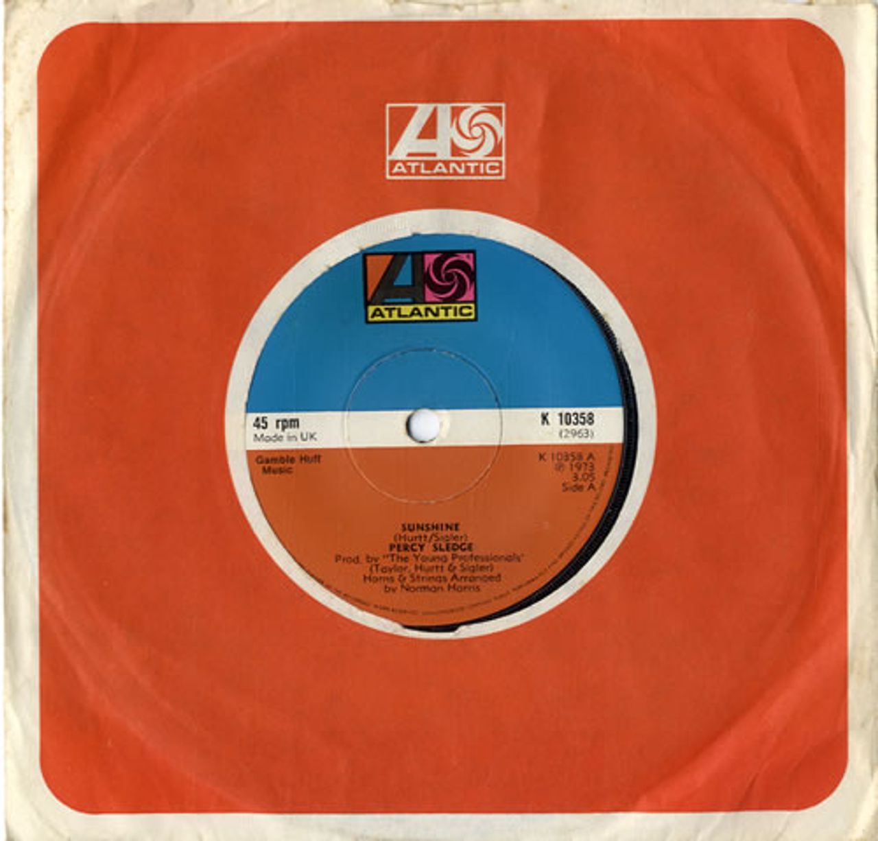 PERCY SLEDGE Sunshine (1973 UK 7" single with solid centre,