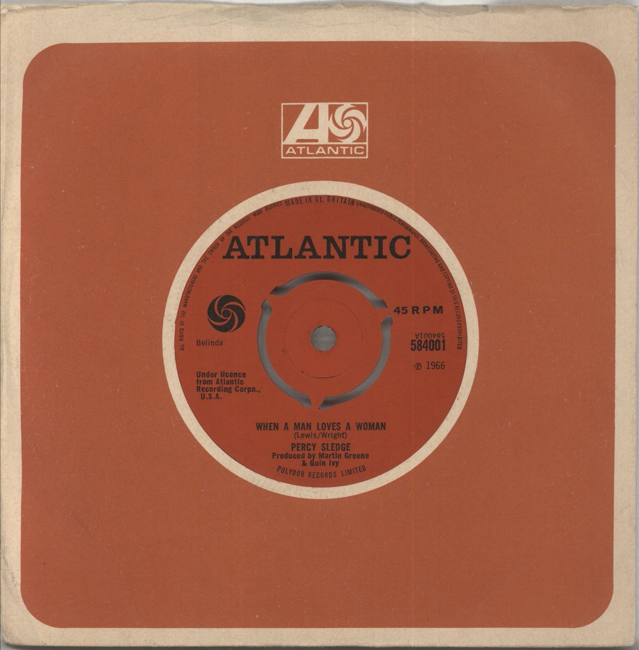 PERCY SLEDGE When A Man Loves A Woman (Classic 1966 UK 7" vinyl single with intact four prong centre, also featuring Love Me Like You Mean It, Atlantic company die cut paper sleeve)