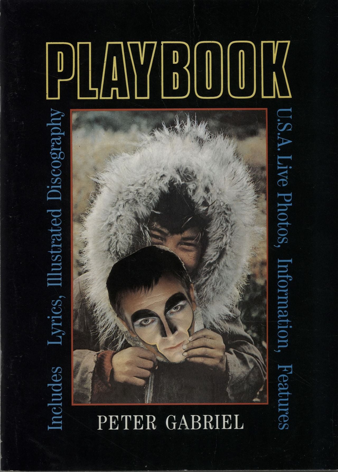 PETER GABRIEL Playbook (Scarce 1983 UK 52-page tour programme with cut-out mask, lyrics, discography, pictures & merchandising, and lists the tour dates for 'Playtime 1988'! The cover has just a light crease but otherwise remains excellent, comes with two ticket stubs for 5th September show at the Gaumont Theatre in Southampton. Please note that the ticket(s) shown in our image might be different to that you receive)