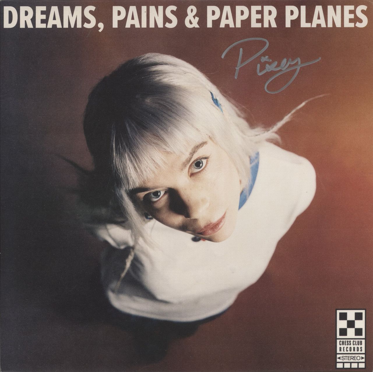 PIXEY Dreams, Pains & Paper Planes (2023 UK 8-track 12" vinyl mini album. Regarded as her debut release, this record captures her signature mix of indie-pop sparkle and DIY energy. The majority of the record was written, recorded, and producedby Pixey herself in her bedroom, with a handful of additional tracks completed in the studio - a debut that balances raw creativity with polished production. Picture sleeve with lyric inner and fold-out credit/art insert. The front of the sleeve is Autographed clearly in silver pen. The sleeve shows just a little light shelfwear and the vinyl is in Near Mint condition)