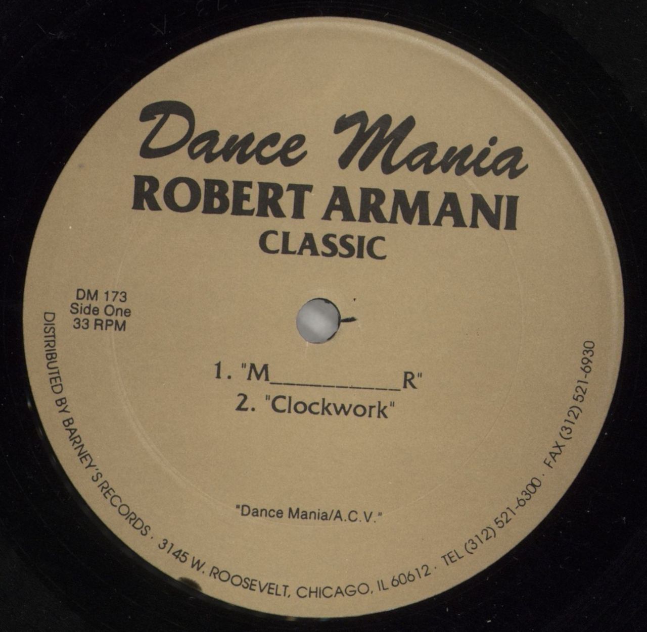 ROBERT ARMANI Classic (Scarce 1996 US 4-track 12" vinyl single, thumpin' Acid grooves from the Chicago pioneer on the collectable Dance Mania imprint, die-cut sleeve. The vinyl is Excellent with minimal signs of play DM173)