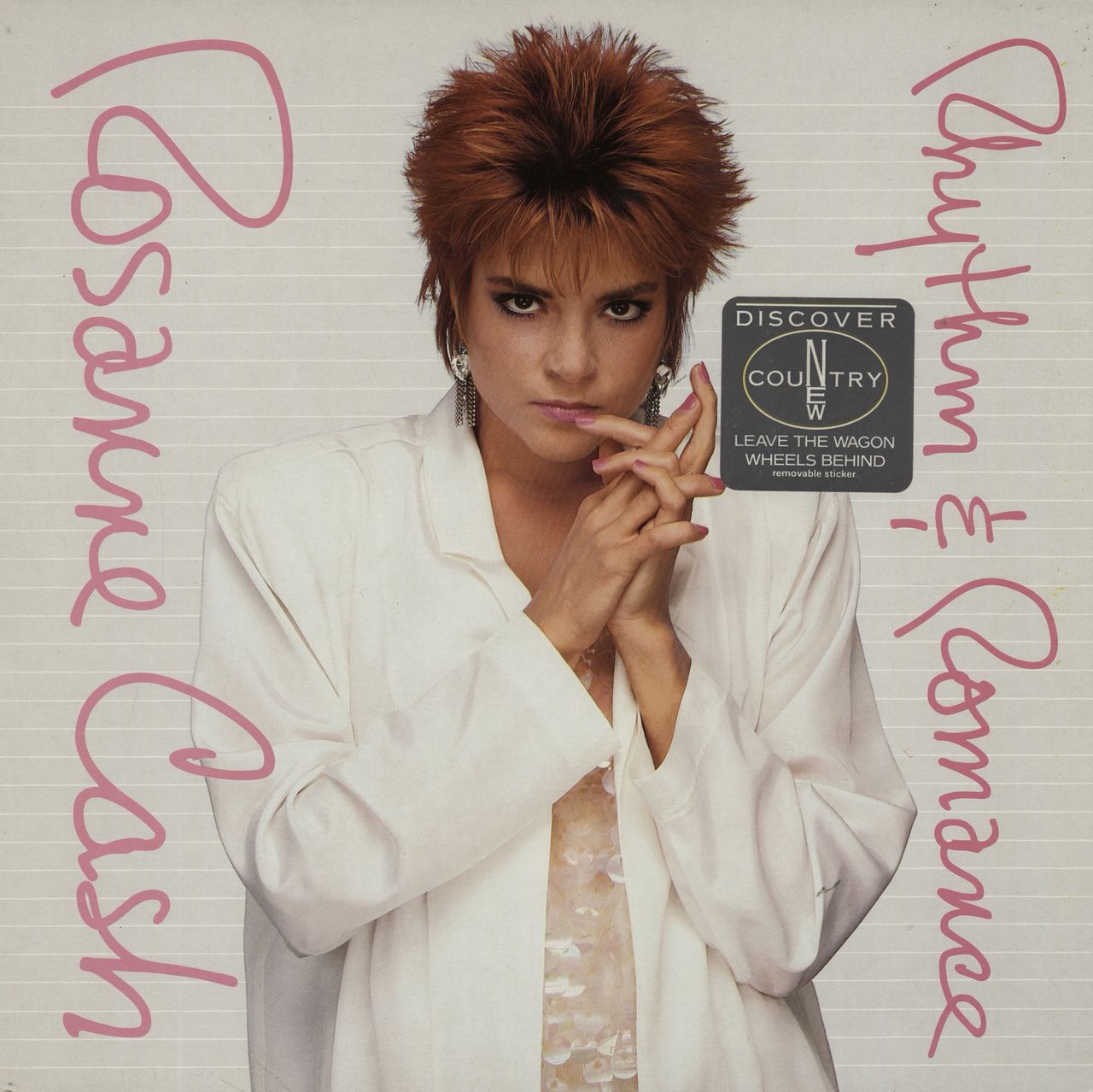 ROSANNE CASH Rhythm And Romance (1985 UK 10-track vinyl LP, complete with illustrated lyric insert, gold promo stamped hype stickered picture sleeve. Apart from the beginnings of a split to the spine, the sleeve shows just a little light sheflwear and the vinyl is flawless)