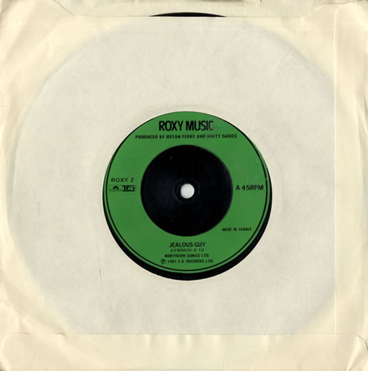 ROXY MUSIC Jealous Guy (1981 UK injection moulded 7" vinyl single, manufactured in France for the UK market, also featuring To Turn You On, plain die cut sleeve ROXY2)