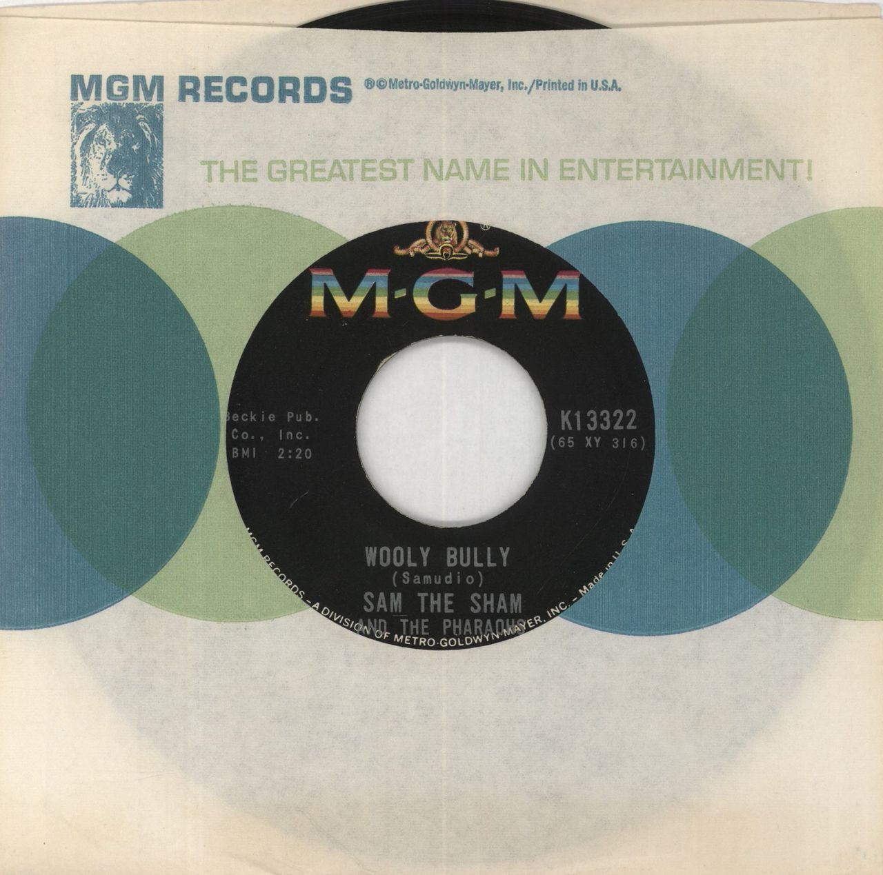 SAM THE SHAM & THE PHARAOHS Wooly Bully (Scarce 1965 US 2-track 7'' single on MGM with wide centre. Features Ain't Gonna Move on the flip and is housed in thre MGM company sleeve. Both sleeve and vinyl show only a few light signs of age/play.Garage/frat rock classic of the highest order! K13322)