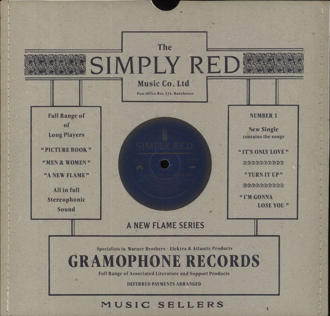 SIMPLY RED It's Only Love (Rare 1989 UK limited edition 3-track 10" vinyl single featuring Valentine Mix, Turn It Up & I'm Gonna Lose You, a limited edition of 5,000 in an individually hand numbered, custom stitched & stamped die-cut retro style sleeve YZ349TE)