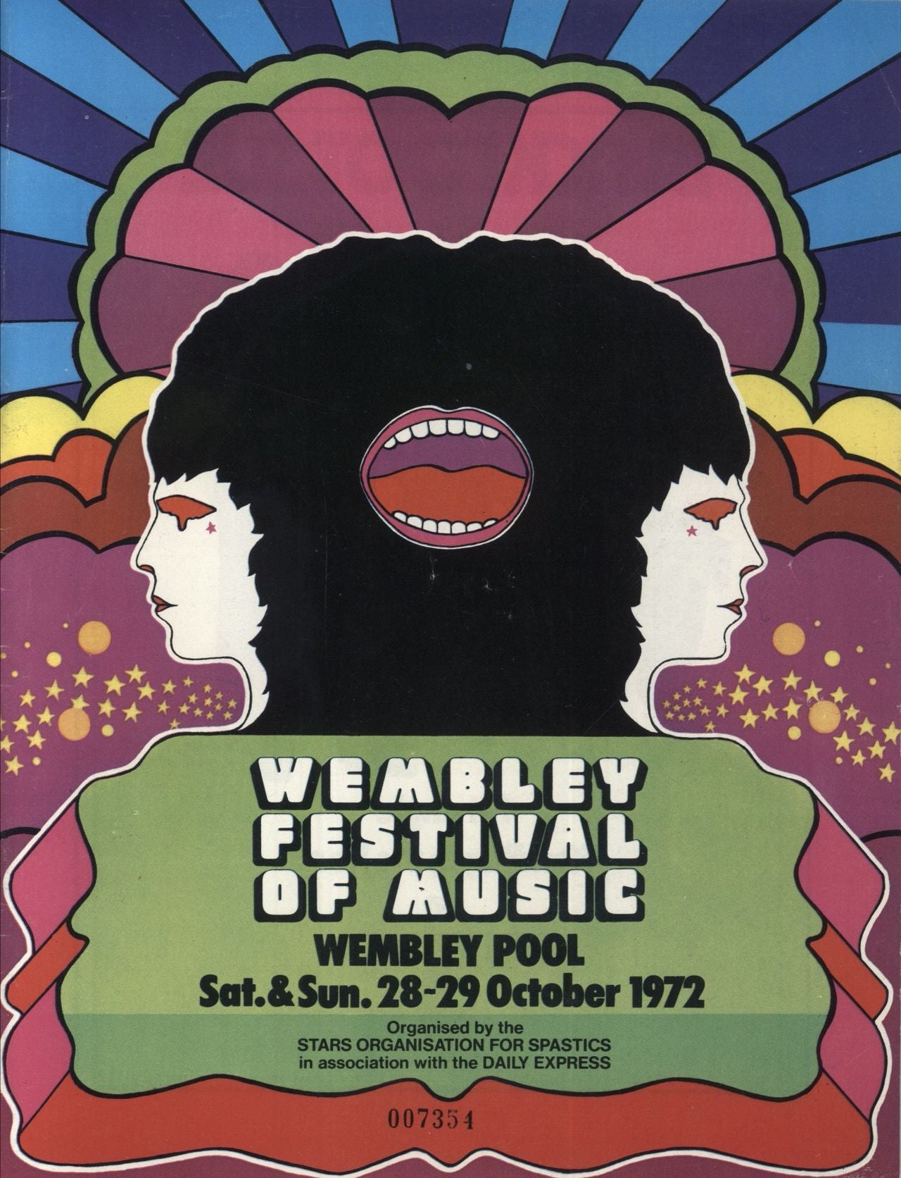 SLADE / FACES / PINK FAIRIES / NEW YORK DOLLS Wembley Festival Of Music (Rare 1972 UK 32-page festival programme for the event held at Wembley Pool in London, on Saturday & Sunday the 28th & 29th October 1972. Features pages dedicated to the artists performing, with Slade headlining on the Saturday & The Faces on the Sunday. Comes complete with a fantastic vibrant full colour cover & is individually number stamped on the front (No. 007354). For an item almost fifty years old & madefromthin paper stock, this remains in an outstanding condition with minimal wear or ageing)