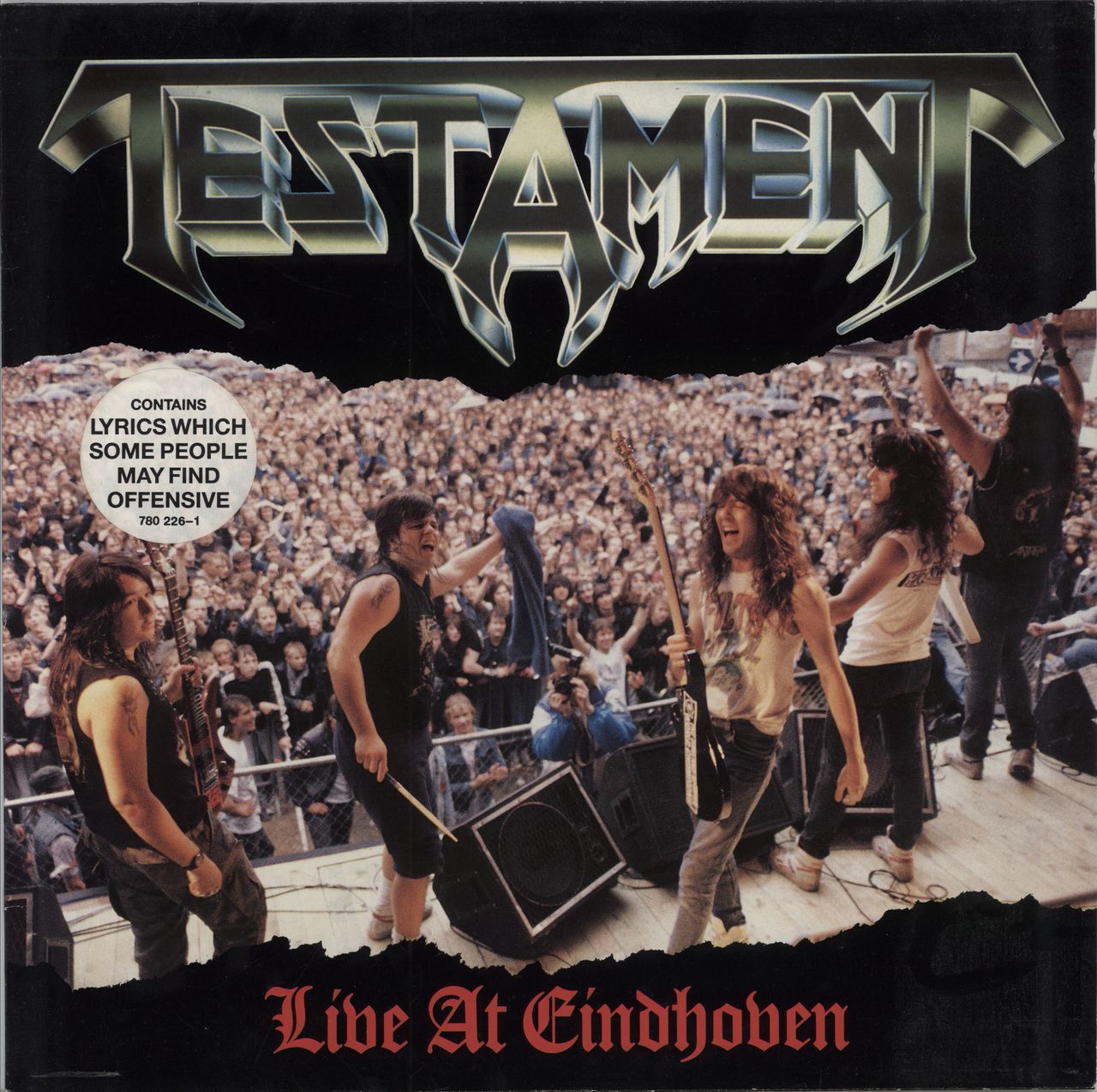 TESTAMENT Live At Eindhoven (1987 German 6-track 12" vinyl EP recorded live at the Dynamo Festival in Holland on the 8th June 1987, great live EP from the loved and arguably underrated thrash band, warning stickered glossy picture sleeve. Thesleeve displays some wear, mosty to the edges and the vinyl has only light signs of play, overall an excellent example)