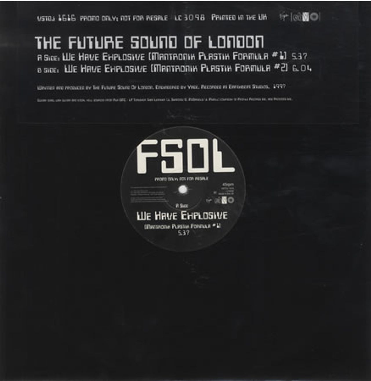 F.S.O.L. We Have Explosive (1997 UK 2-track promotional 12" vinyl single including Mantronik Plastik Formula #1 Mix and Mantronik Plastik Formula #2 Mix, custom title stickered sleeve VSTDJ1616)