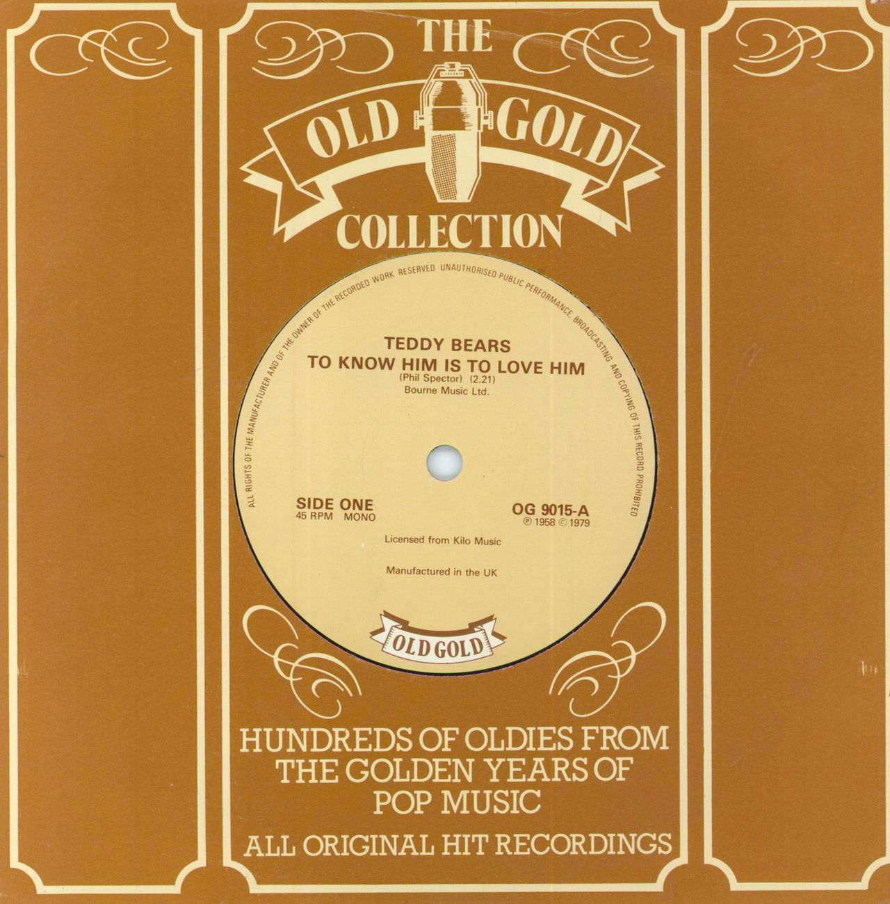 TEDDY BEARS To Know Him Is To Love Him (1979 UK solid centre 7" vinyl single, also including Endless Sleep by Jody Reynolds, die-cut Old Gold series sleeve OG9015)