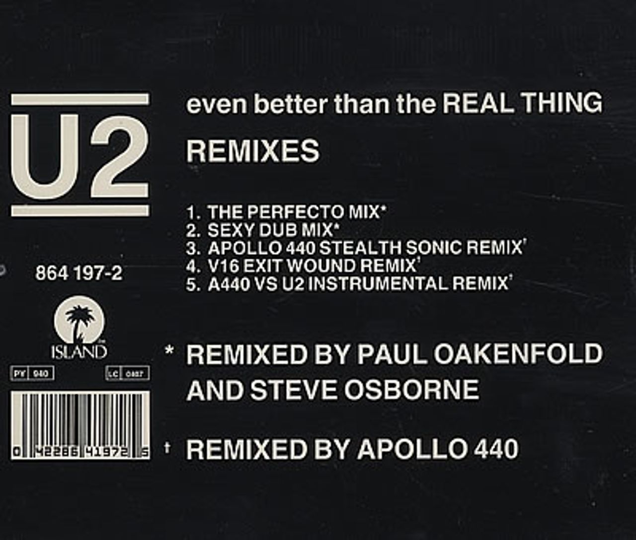 U2 Even Better Than The Real Thing (1992 French 5-track CD single featuring The Perfecto Mix, Sexy Dub Mix & Apollo 440 Stealth Sonic Remix, includes over 29 minutes of remixes, picture sleeve)