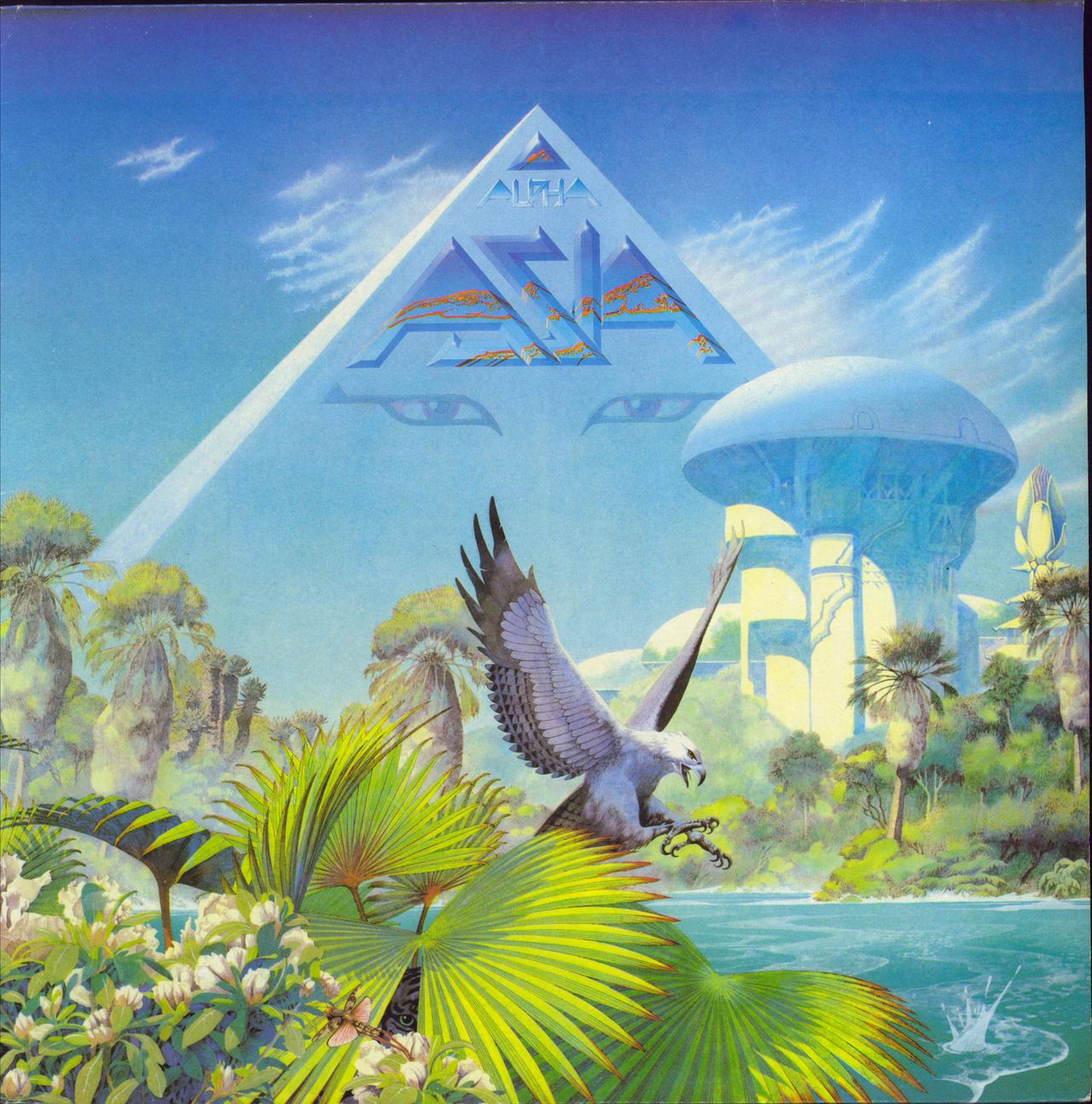 ASIA Alpha (1983 UK 10-track vinyl LP, the second studio album from the prog supergroup featuring Geoff Downes, Steve Howe, Carl Palmer & John Wetton. The Roger Dean artwork picture sleeve shows a little shelfwear but comes with the illustrated lyric insert and the vinyl remains in excellent condition with only light signs of play GEF25508)