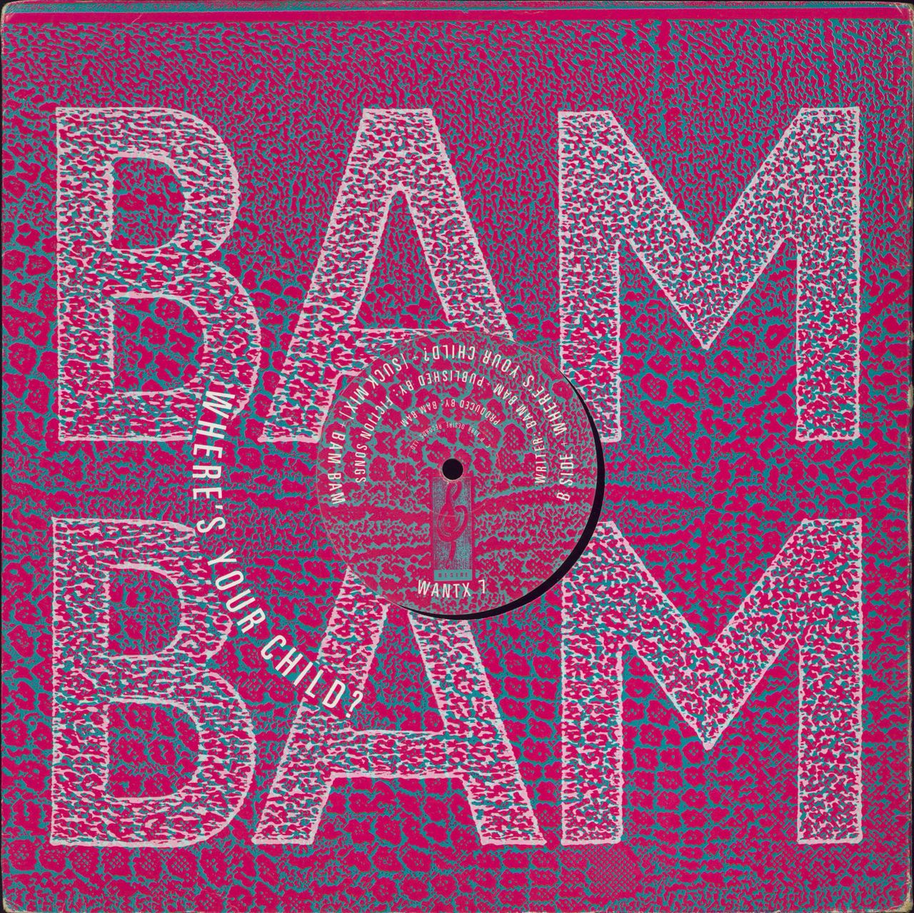 BAM BAM Where's Your Child? (1988 UK 2-track 12" vinyl single, includes Suck Mix, die-cut picture sleeve WANTX7)