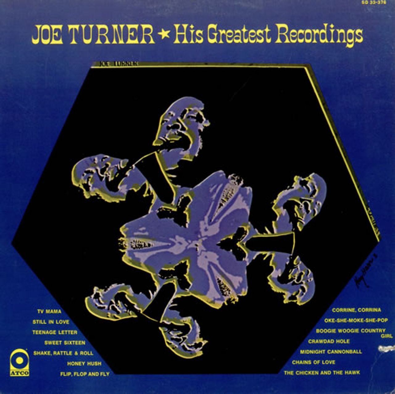 JOE TURNER His Greatest Recordings (1970's US yellow Atco label 14-track vinyl LP - as the title suggests, this is a great collection of the bluesman's greatest compositions, including the hits Corrine, Corrina; Shake, Rattle & Roll and Honey Hush amongst others. Presented in a great gatefold picture sleeve, the sleeve shows some noticable light scuffing/creasing mainly to the edges plus a deletion cut whilst the vinyl shows minimal signs of play SD33-376)