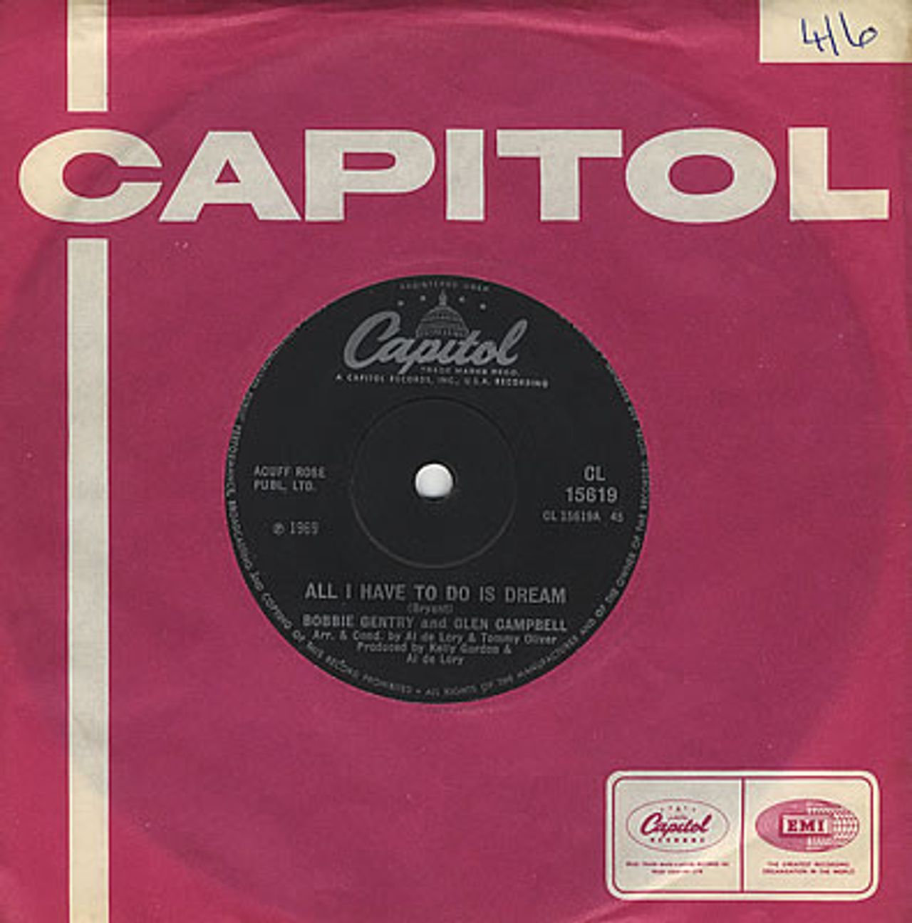 BOBBIE GENTRY & GLEN CAMPBELL All I Have To Do Is Dream (1969 UK solid centre 7" vinyl single also including 'Walk Right Back', Capitol company die cut paper sleeve CL15619)