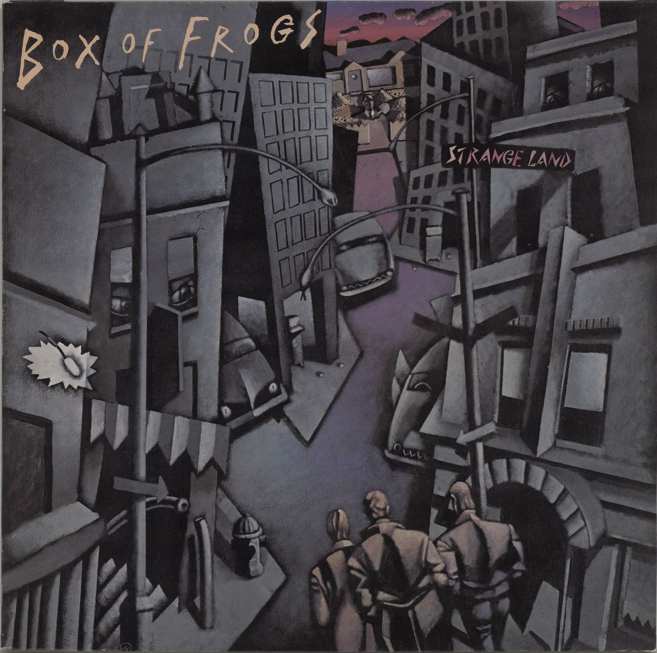 BOX OF FROGS Strange Land (1986 UK 9-track vinyl LP featuring Rory Gallagher, Jimmy Page, Ian Dury, Roger Chapman and Steve Hackett, picture sleeve. The sleeve shows light edgewear, whilst the vinyl shows few signs of play, thus remaining in Excellent condition PC26375)
