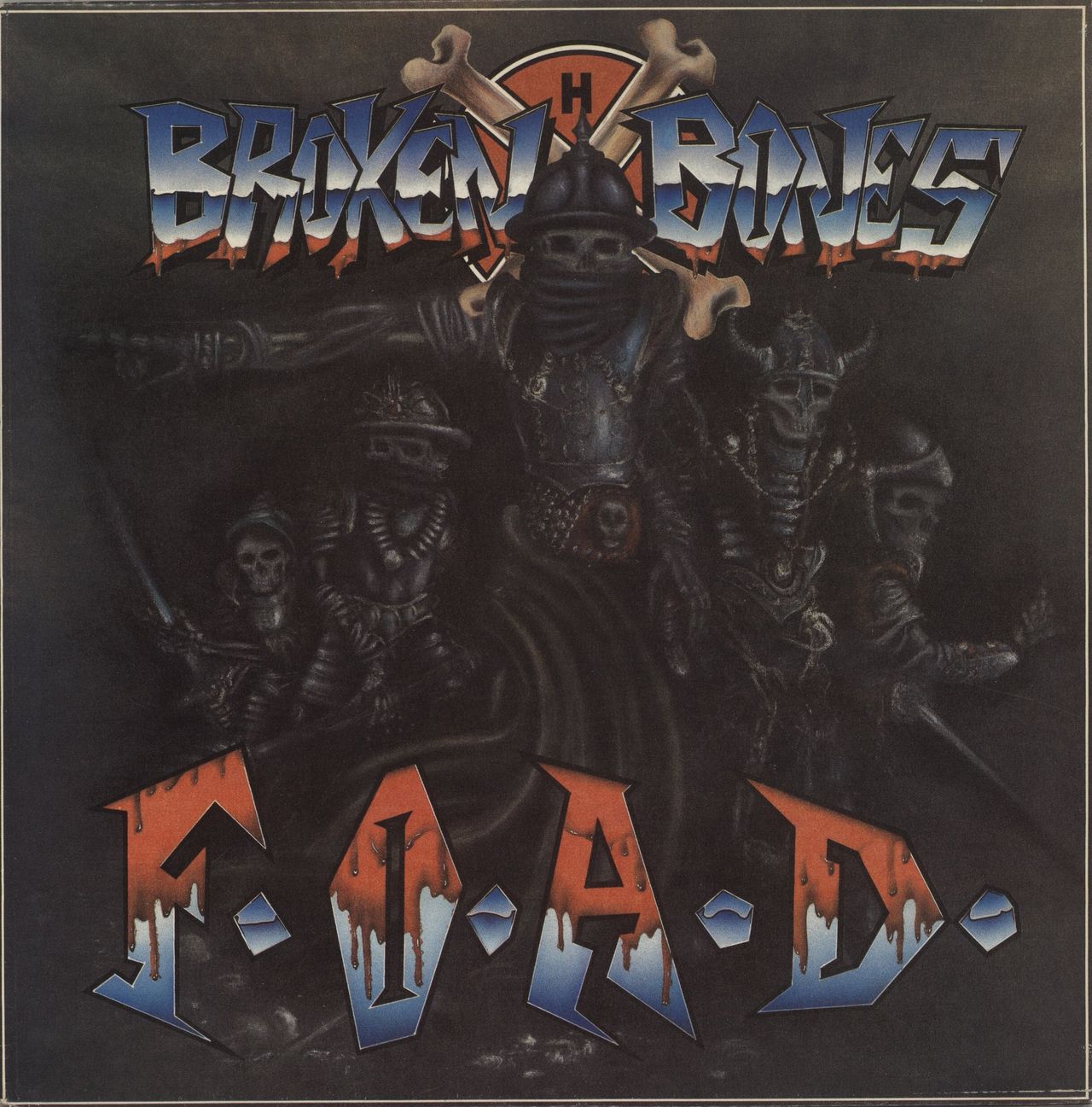 BROKEN BONES F.O.A.D. (1987 US 16-track vinyl LP from the hardcore punk from the band which featured brothers Tezz Roberts and Tony 'Bones' Roberts both former members of Discharge who almost single-handedly invented the hardcore genre. It features a side of new studio recordings and a live side recorded at The Fulham Greyhound in August 1986. The picture sleeve has only minor wear, mainly to the edges and the vinyl is Excellent with just a couple of cosmetic paper scuffs and little evidence of play )