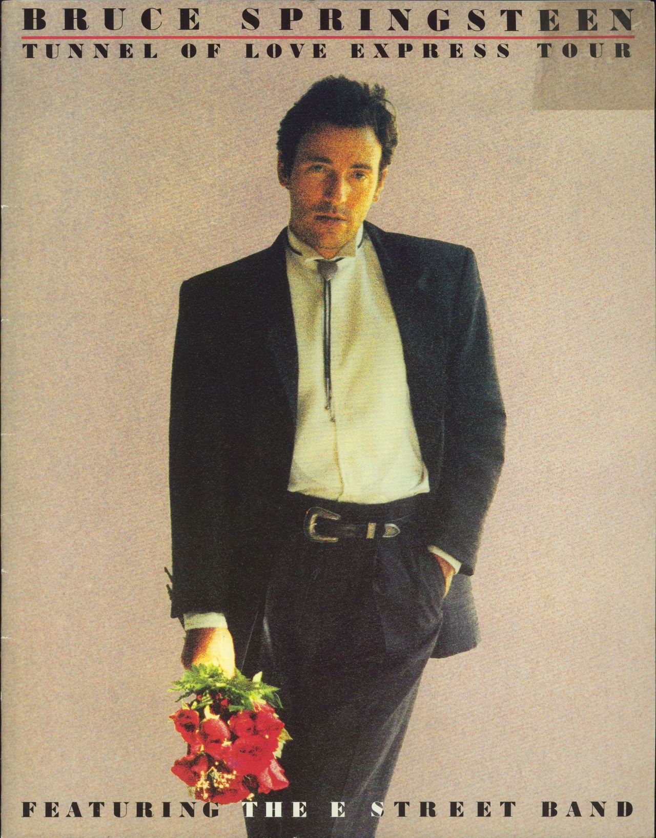 BRUCE SPRINGSTEEN Tunnel Of Love Express Tour (Official 1988 UK 24-page 11" x 13" tour programme packed with photographs by the likes of Annie Leibovitz and Eve Arnold, plus the text of Bill Barol's 1987 Newsweek article, lyrics to all of thesongs on the Tunnel Of Love album and crew credits. This copy comes with a ticket stub for the Wembley Stadium show on 25th June 1988 which has been secured to the first page)