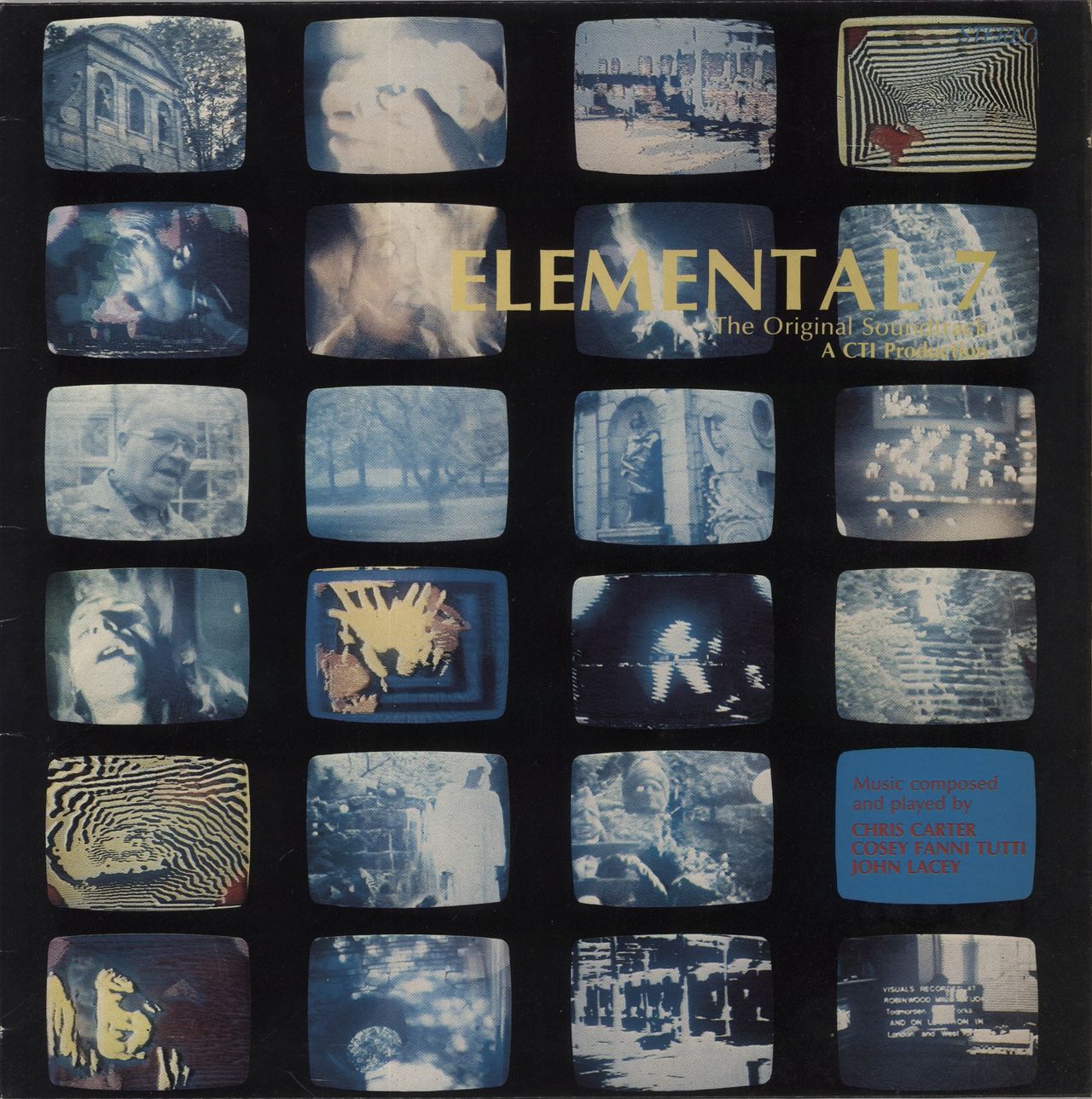 CTI Elemental 7 (The Original Soundtrack) (Rare 1984 UK 9-track vinyl LP, the soundtrack is taken from a one hour video by CTI entitled Elemental 7. All pieces were composed and played by Chris Carter, Cosey Fanni Tutti and John Lacey, recorded in 1982 and completed in 1983. Housed in a single pocket picture sleeve. The sleeve shows just minor signs of shelfwear and the vinyl remains in near mint condition - an outstanding example! DVR3)