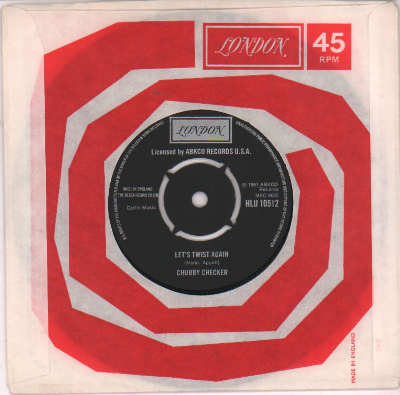 CHUBBY CHECKER Let's Twist Again (1975 UK 7" vinyl single with intact four prong centre and 'Licensed by ABKCO Records' text under the London logo, also including The Twist, London company die cut paper sleeve HLU10512)