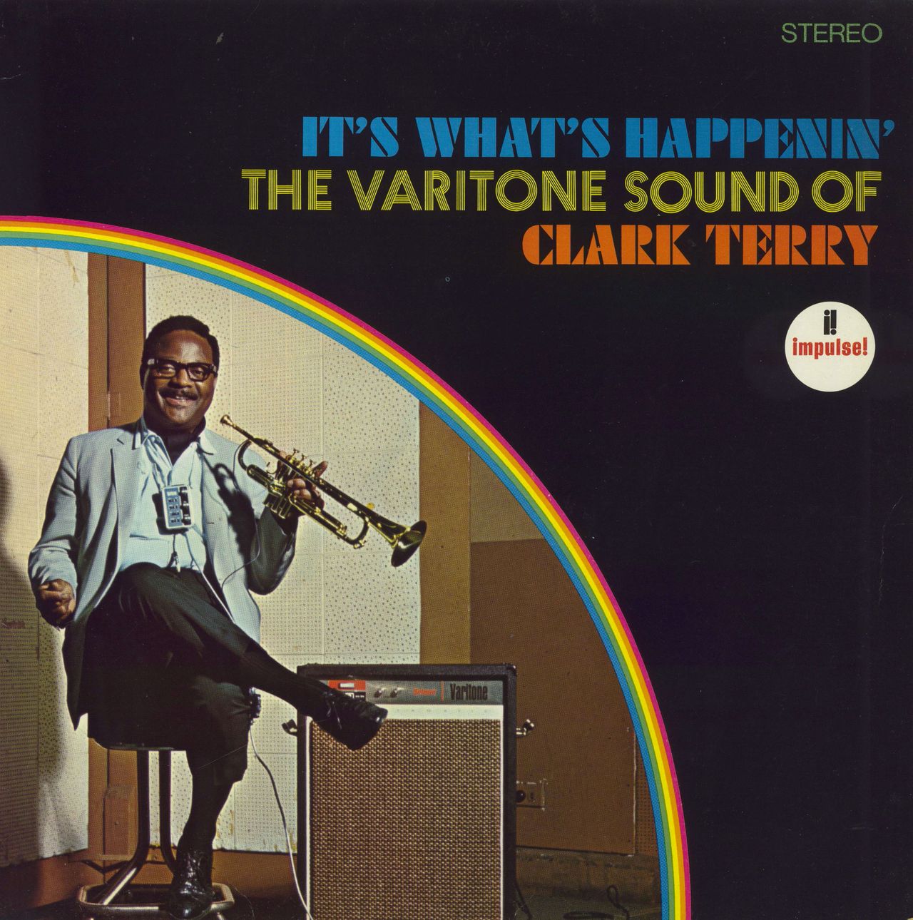 CLARK TERRY It's What's Happenin' (Post-Bop 1982 UK 6-track stereo LP reissue on the Jasmine label. originally released in 1968 and starring Terry on the electronic Varitone trumpet, Don Freidman on Piano, George Duvivier on Bass & Dave Baileyon Drums. The sleeve is Excellent with few signs of shelf wear and the vinyl looks barely played JAS43)