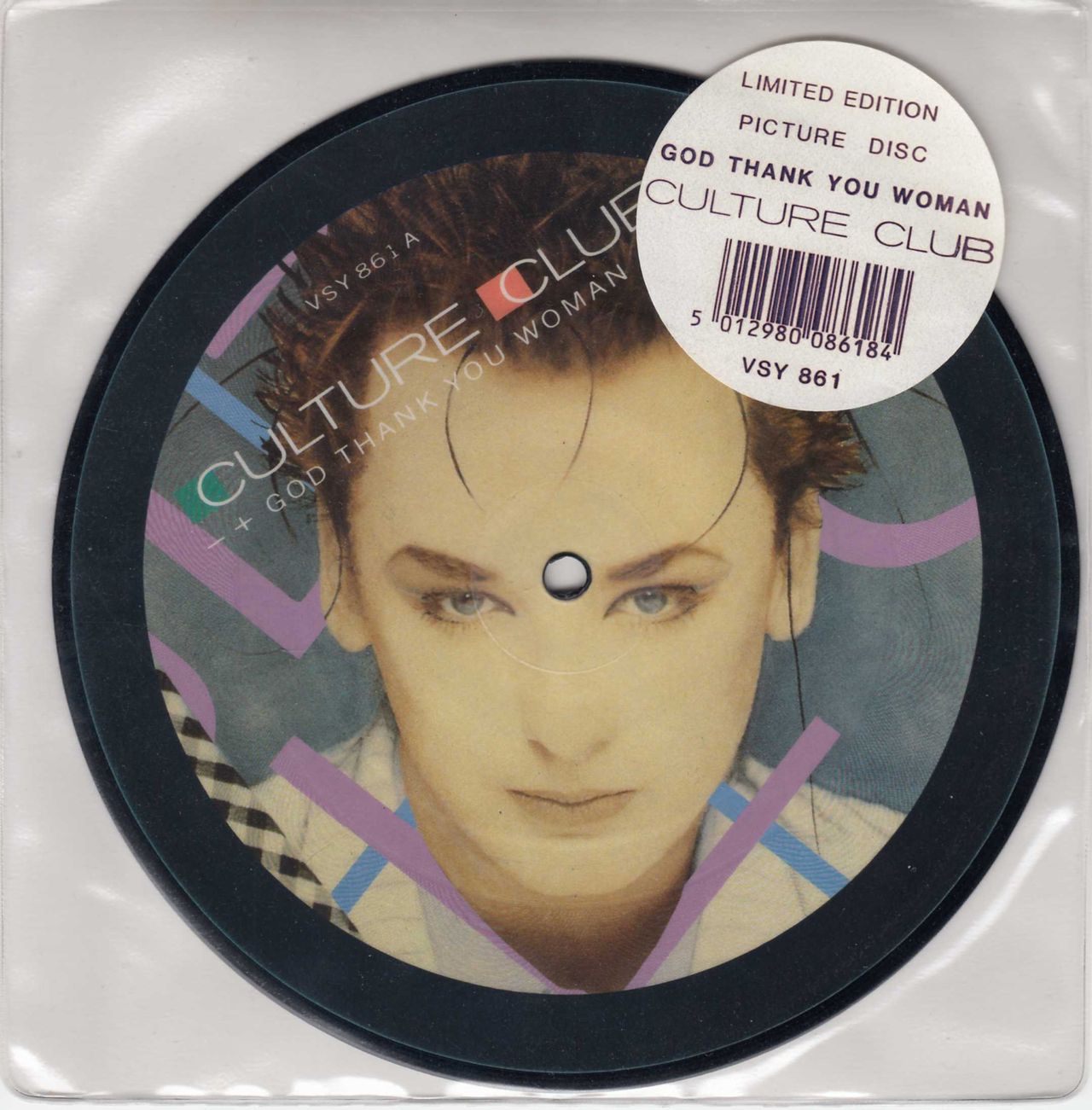 CULTURE CLUB God Thank You Woman (Rare 1986 UK limited edition 7" Picture Disc single, also including From Luxury To Heartache, within the hype stickered clear PVC sleeve. This is now a very hard to to find pressing, we don't see many of these nowdays VSY861)