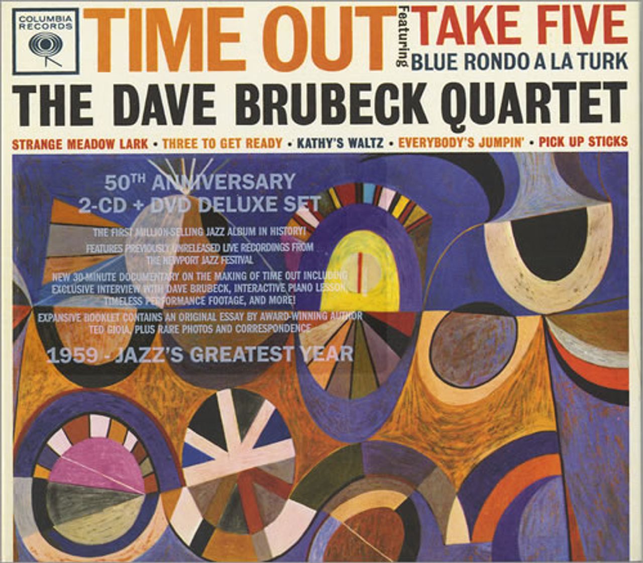 DAVE BRUBECK Time Out (2009 UK 50th Anniversary Legacy Edition 3-disc set of one of the best loved Jazz recordings of all time, with Brubeck on piano, Paul Desmond on alto saxophone, bassist Eugene Wright and drummer Joe Morello [becoming thefirst Jazz album to sell a million copies!], comprising of a remastered edition of the original 7-track album plus a BONUS CD of 8 previously unreleased live performances from the Newport Jazz Festival 1961-64 plus a BONUS Region0NTSC DVD featuring a 30 minute documentary containing previously unseen interviews and features, complete with extensive liner notes, rare photo's, correspondence and clippings. The case shows minimal wear, whilst the discs are in Near Mint condition)
