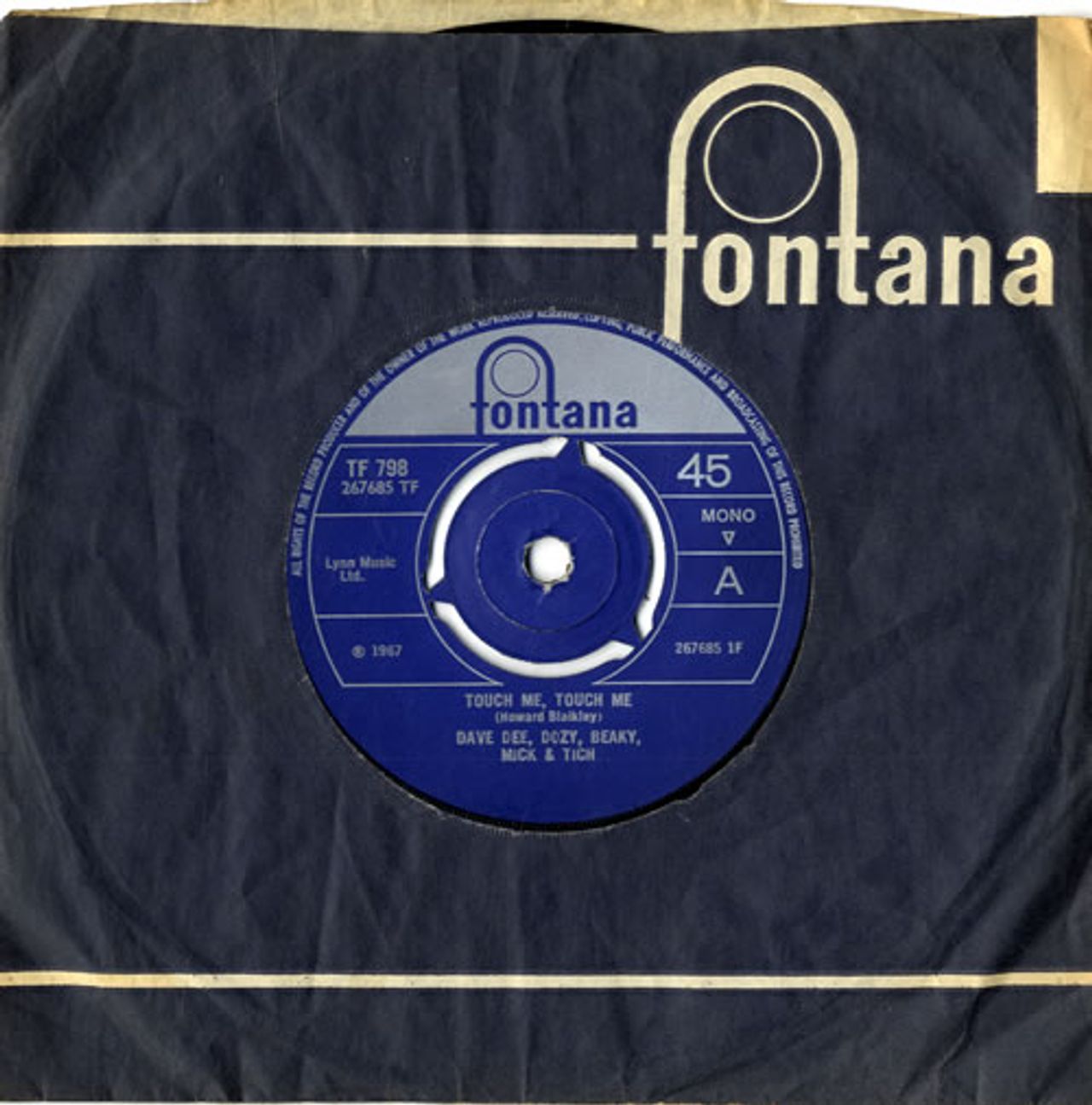 DAVE DEE DOZY BEAKY MICK & TICH Touch Me, Touch Me (1967 UK 7" vinyl single with intact original three prong centre, also featuring Marina, Fontana company die cut paper sleeve. The vinyl shows the odd light scuff/hairline but nothing that greatly affects play TF798)