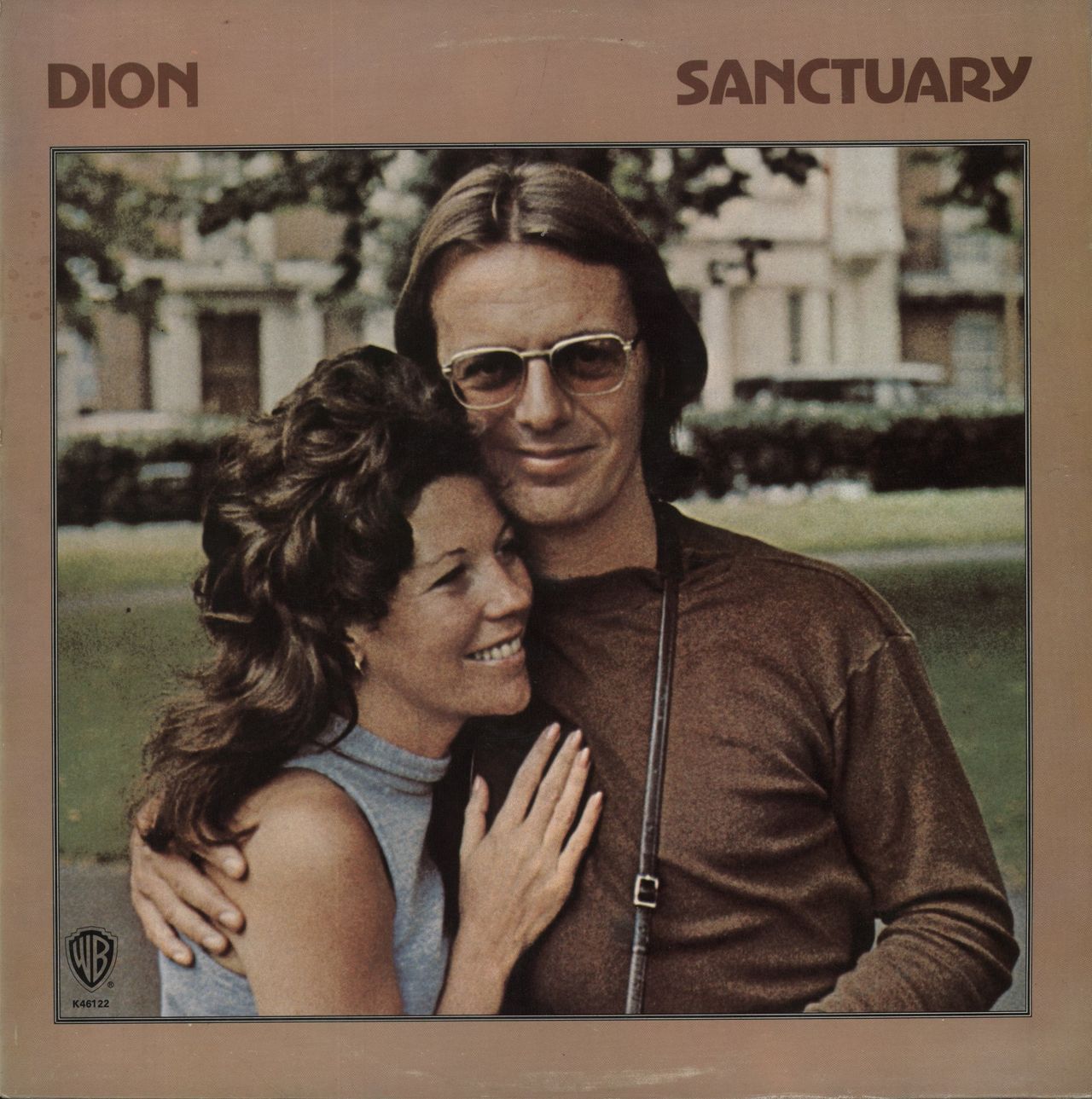 DION Sanctuary (1971 UK green Warner Bros label 11-track vinyl LP, picture sleeve. The sleeve shows a notable edgewear and some paper loss to the spine, however the vinyl shows little of its age and appears barely played K56279)